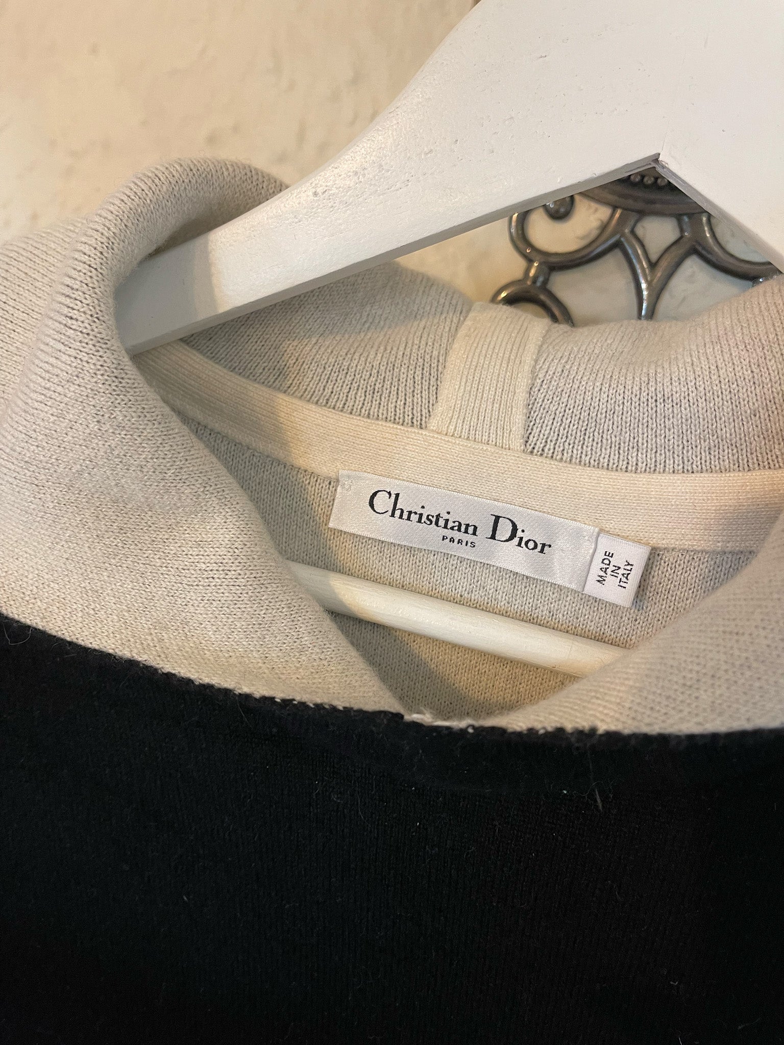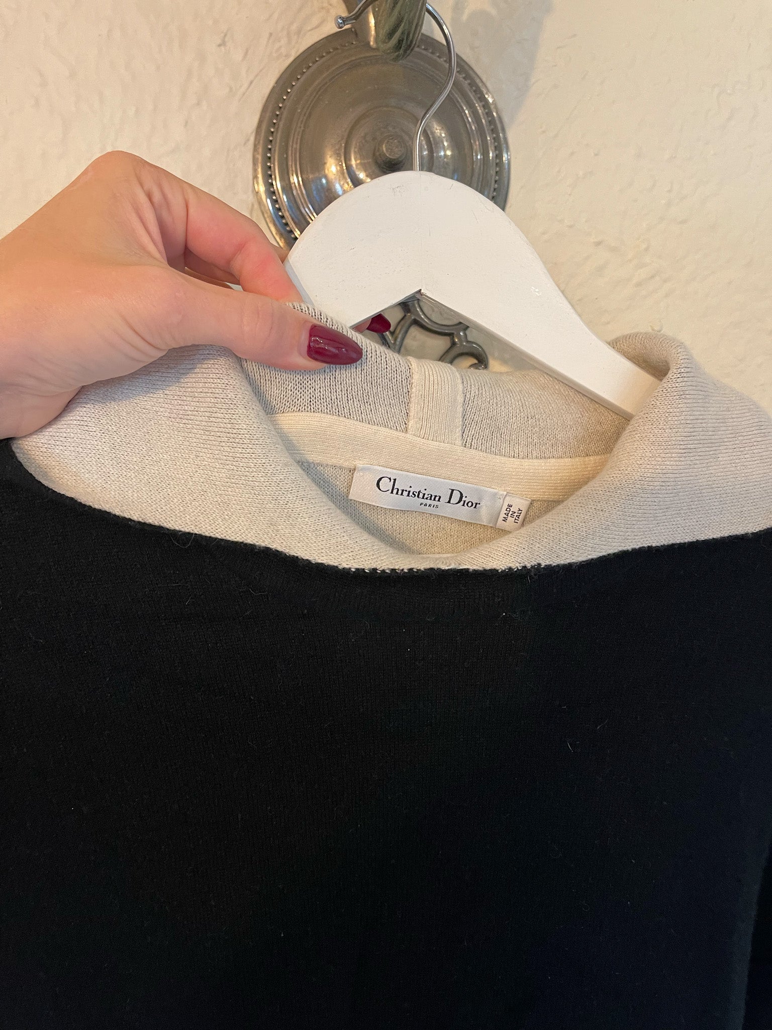 00s Christian Dior J’ADIOR 8 Cashmere Hooded Sweater | Black & Ivory Knit Hoodie