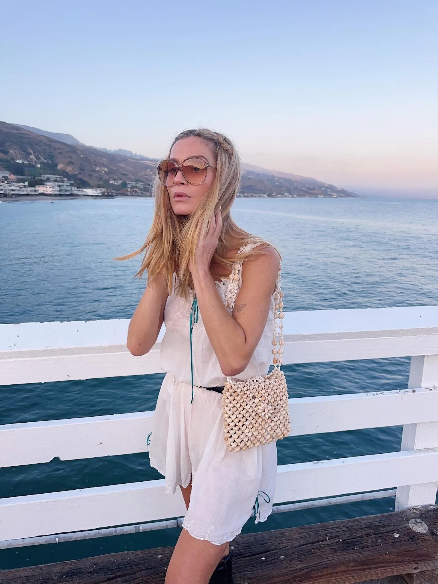20s vintage romper, crafted from light sheer fabric - designed with scalloped lace accents, gathered bust, and adjustable green ribbon ties.