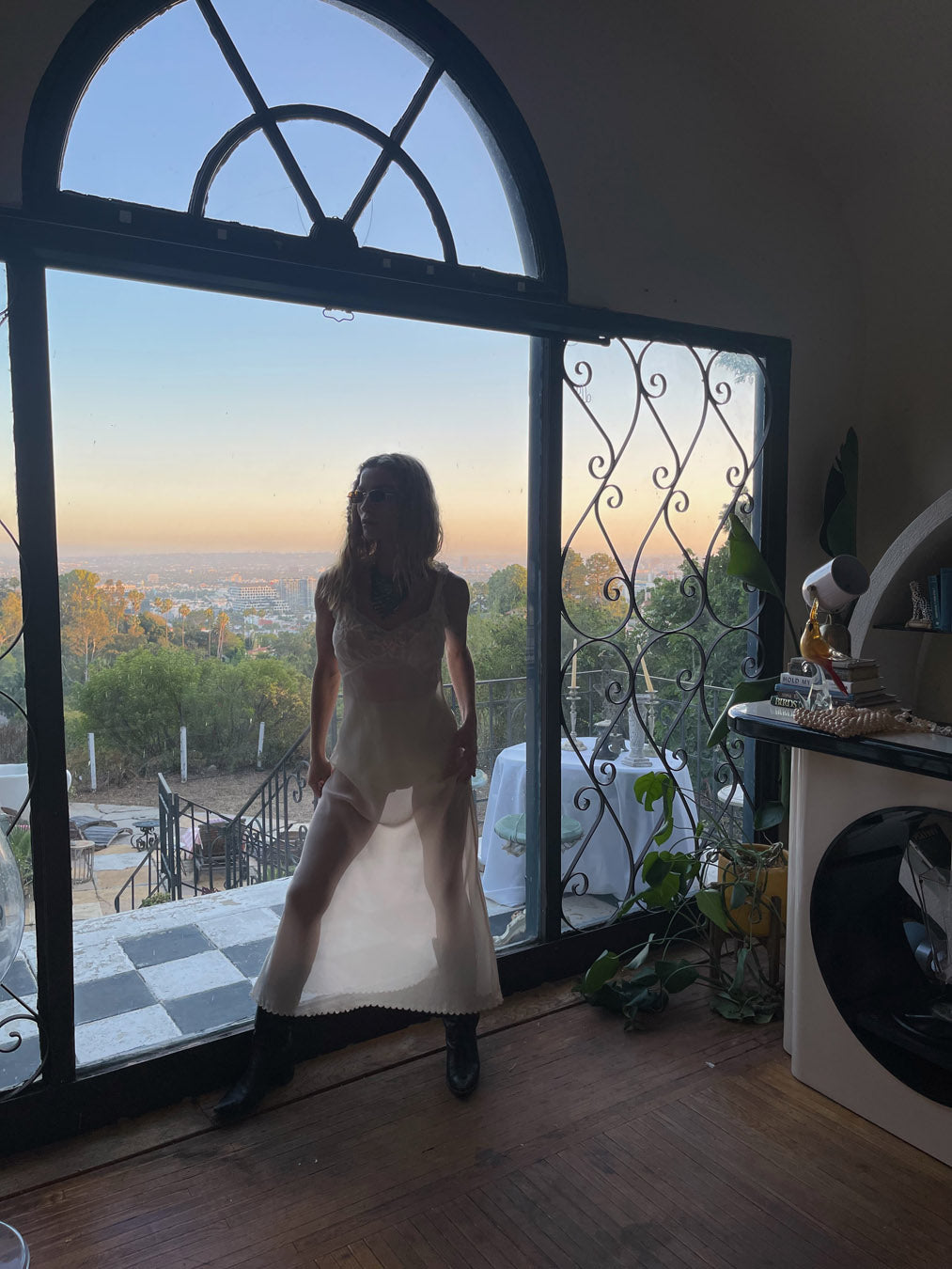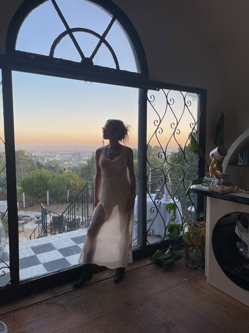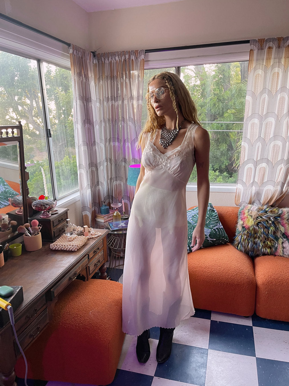 30s Vintage Lace Trim Sheer Maxi Slip Boho Style Pink Bridal Lingerie Dress