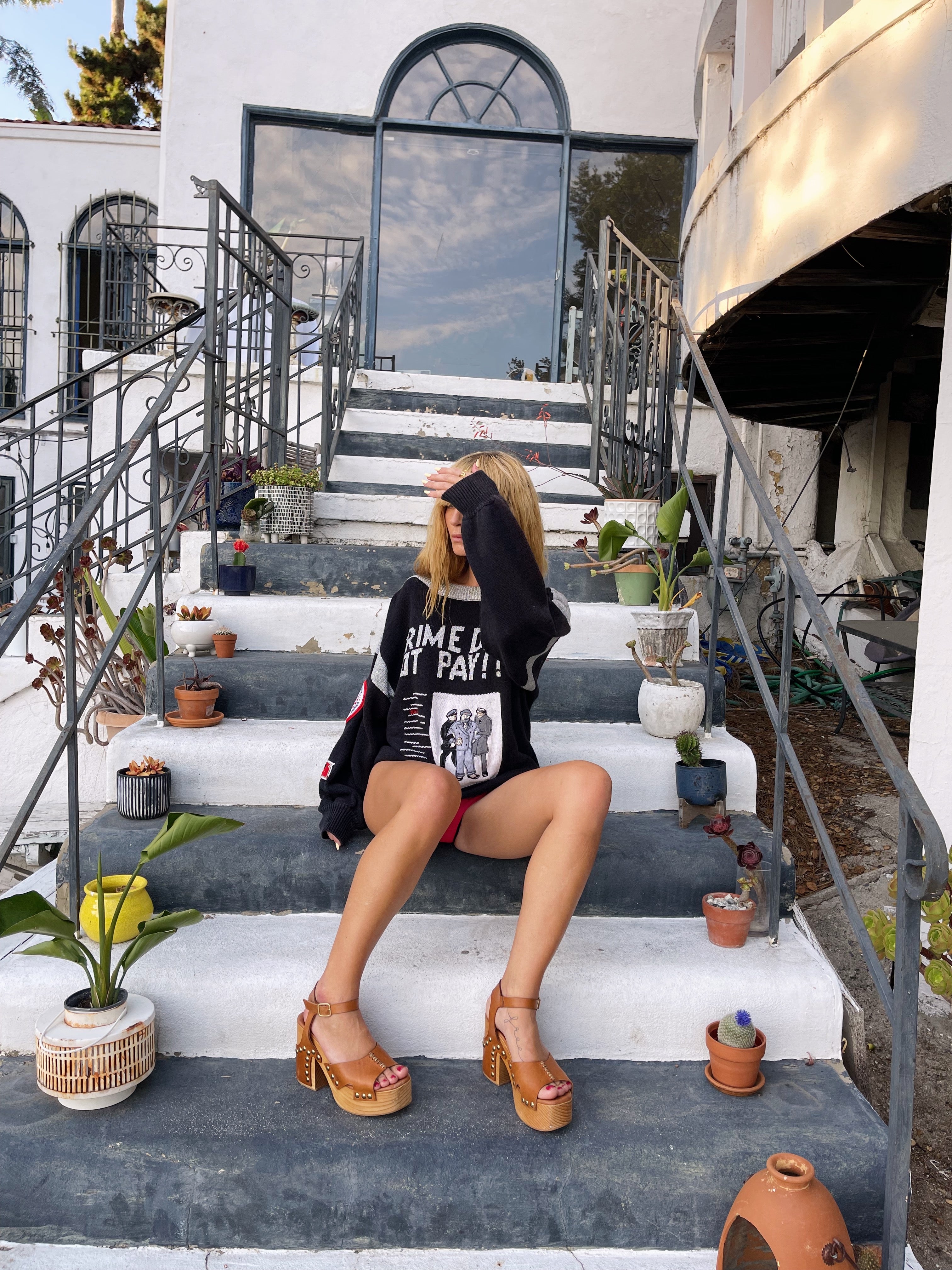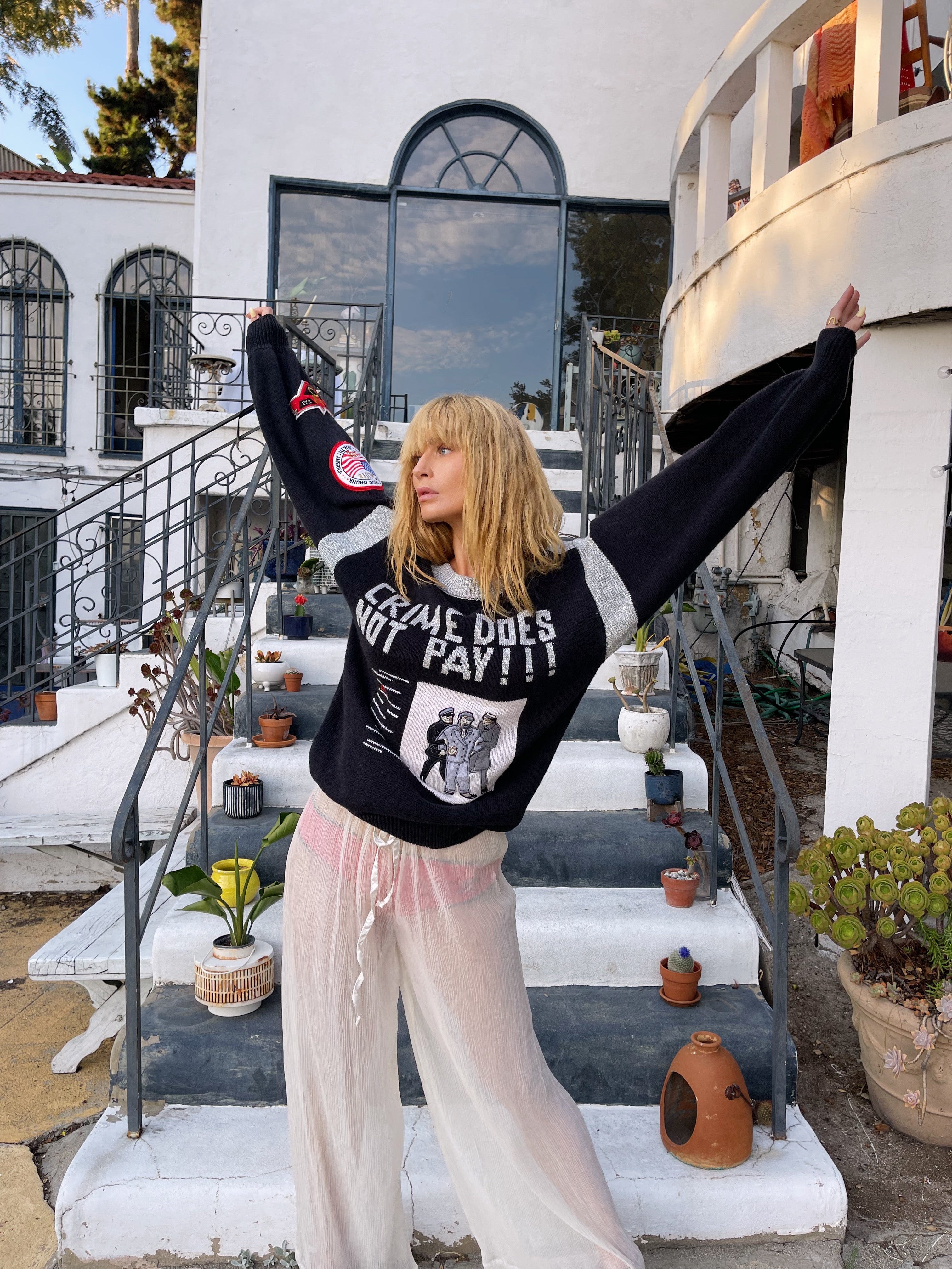 60s Vintage RARE Bonnie Boerer Crime Does Not Pay Pullover Sweater VTG