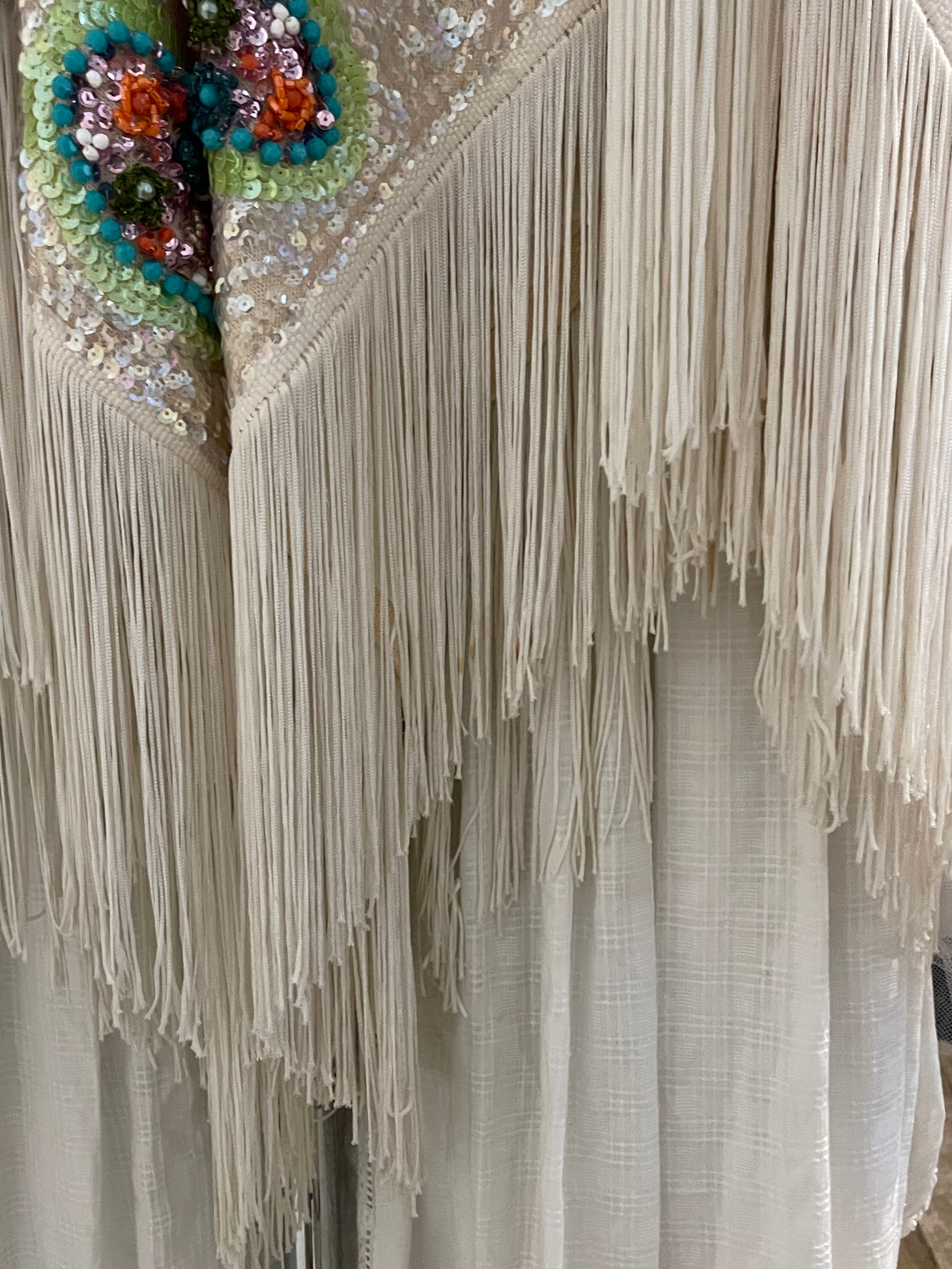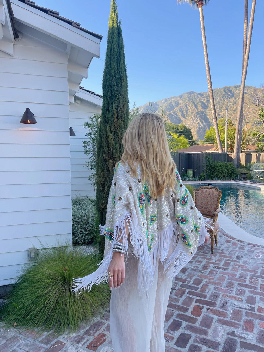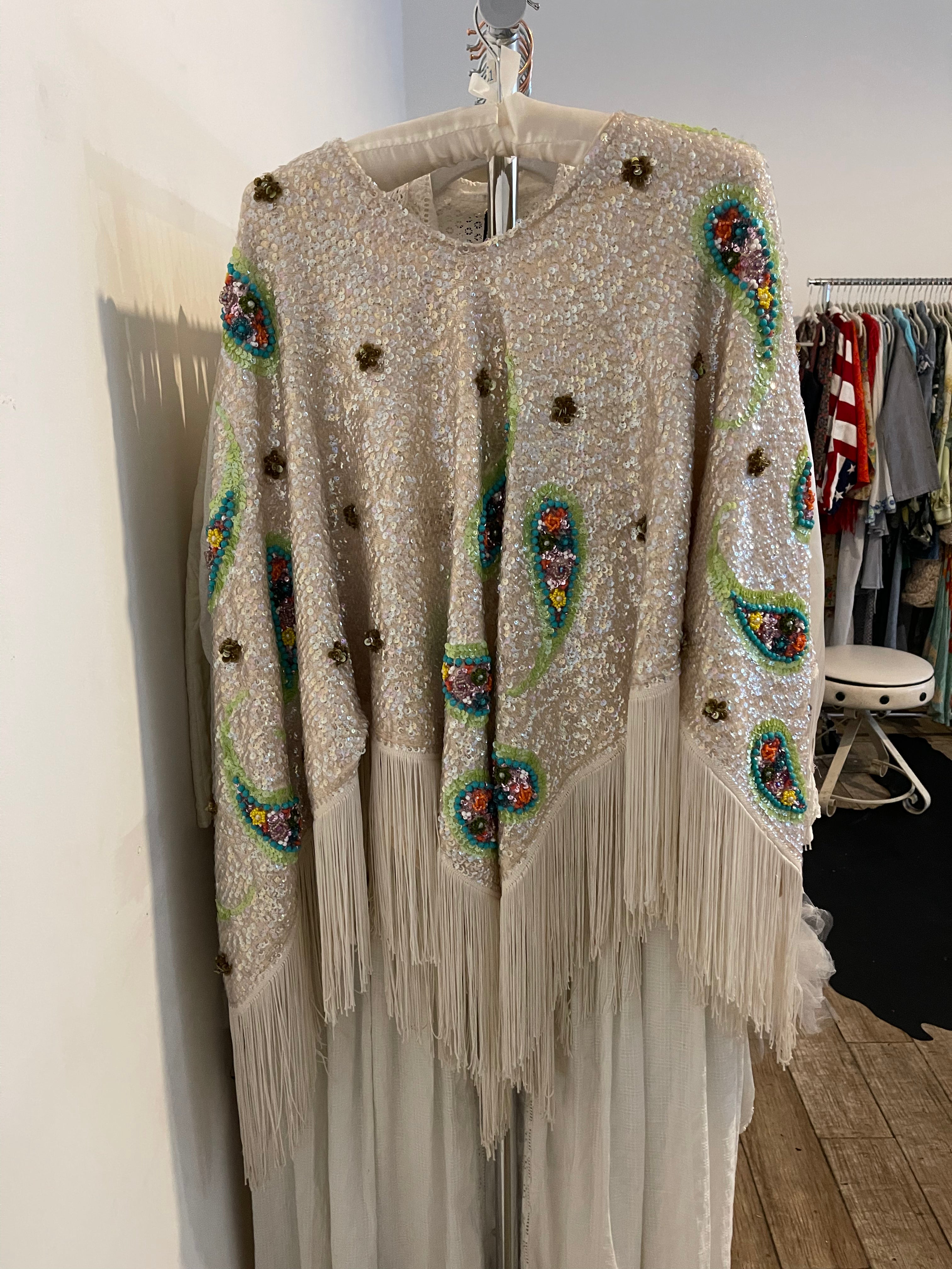 60s Vintage Rare Valentina Sequin Poncho with Fringe Trim
