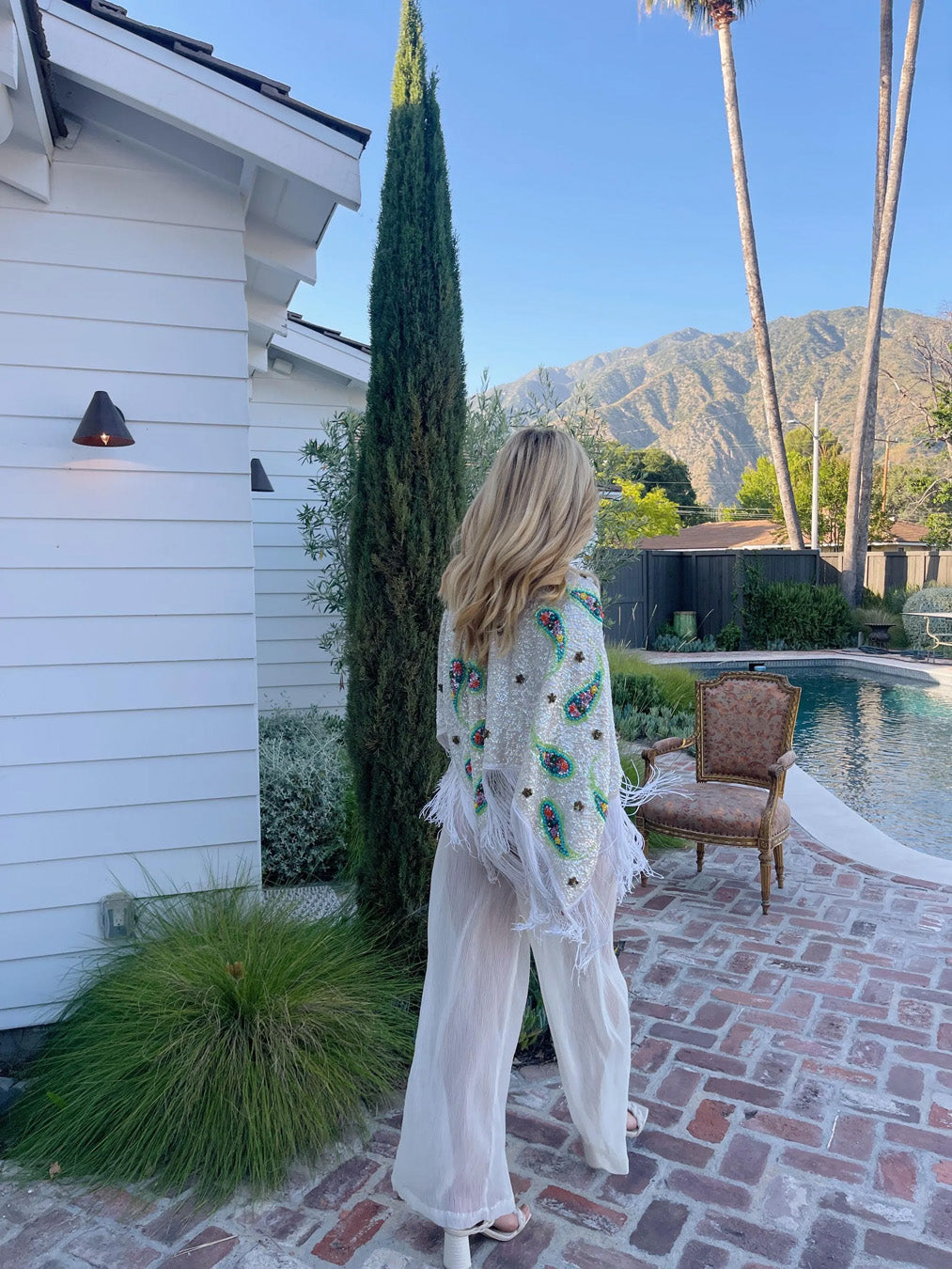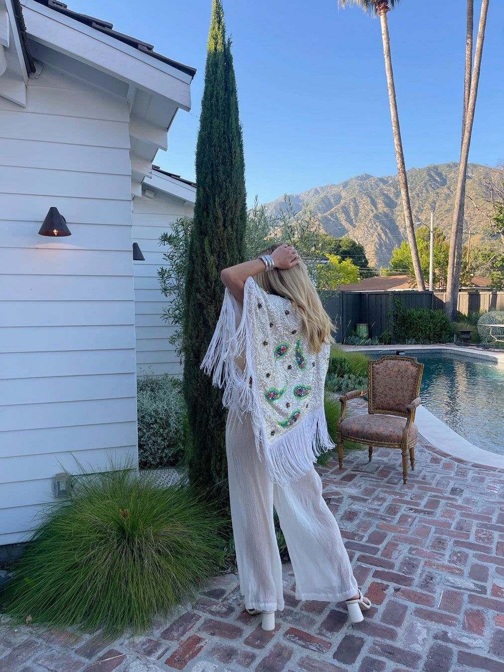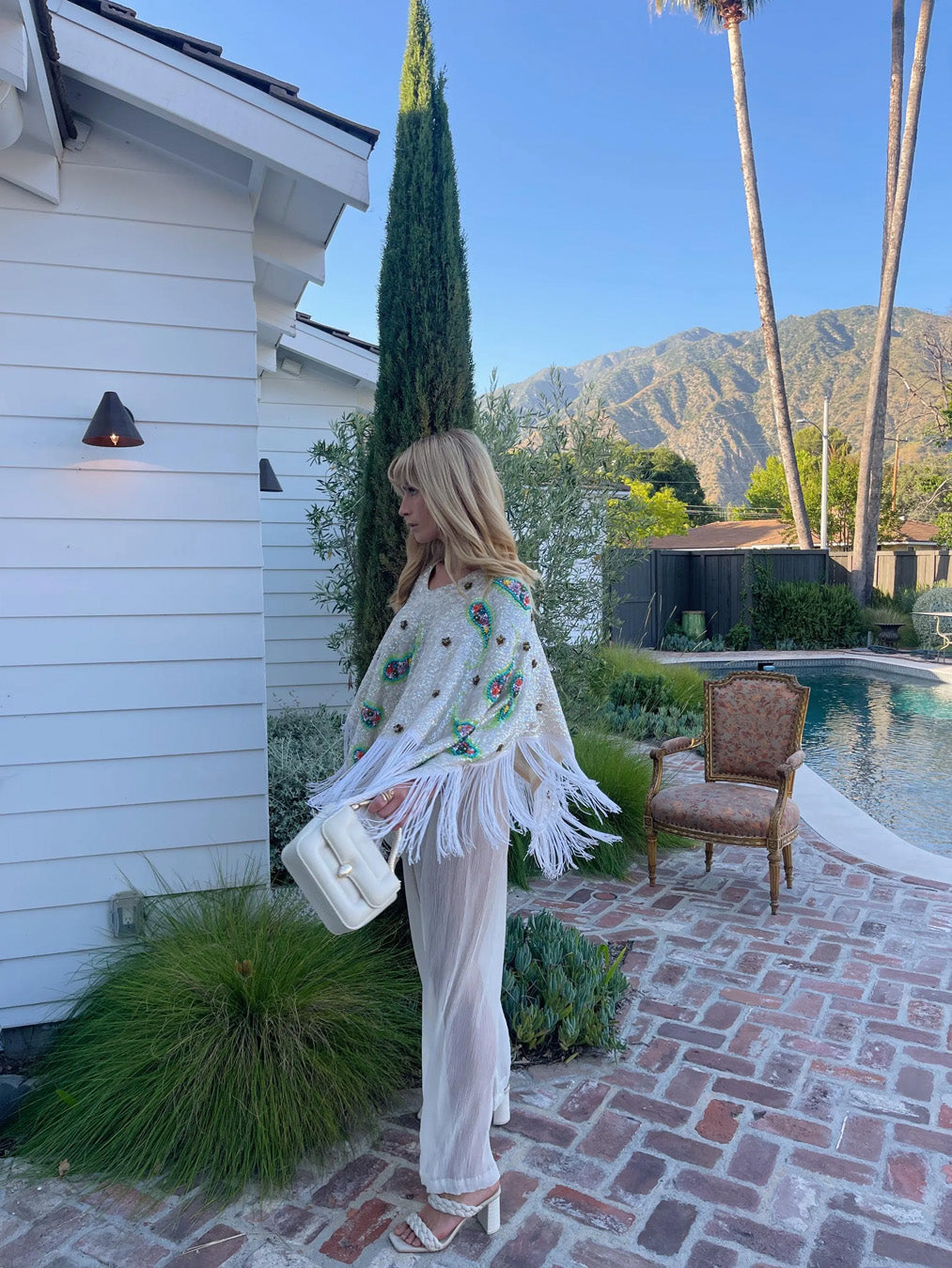 60s Vintage Rare Valentina Sequin Poncho with Fringe Trim