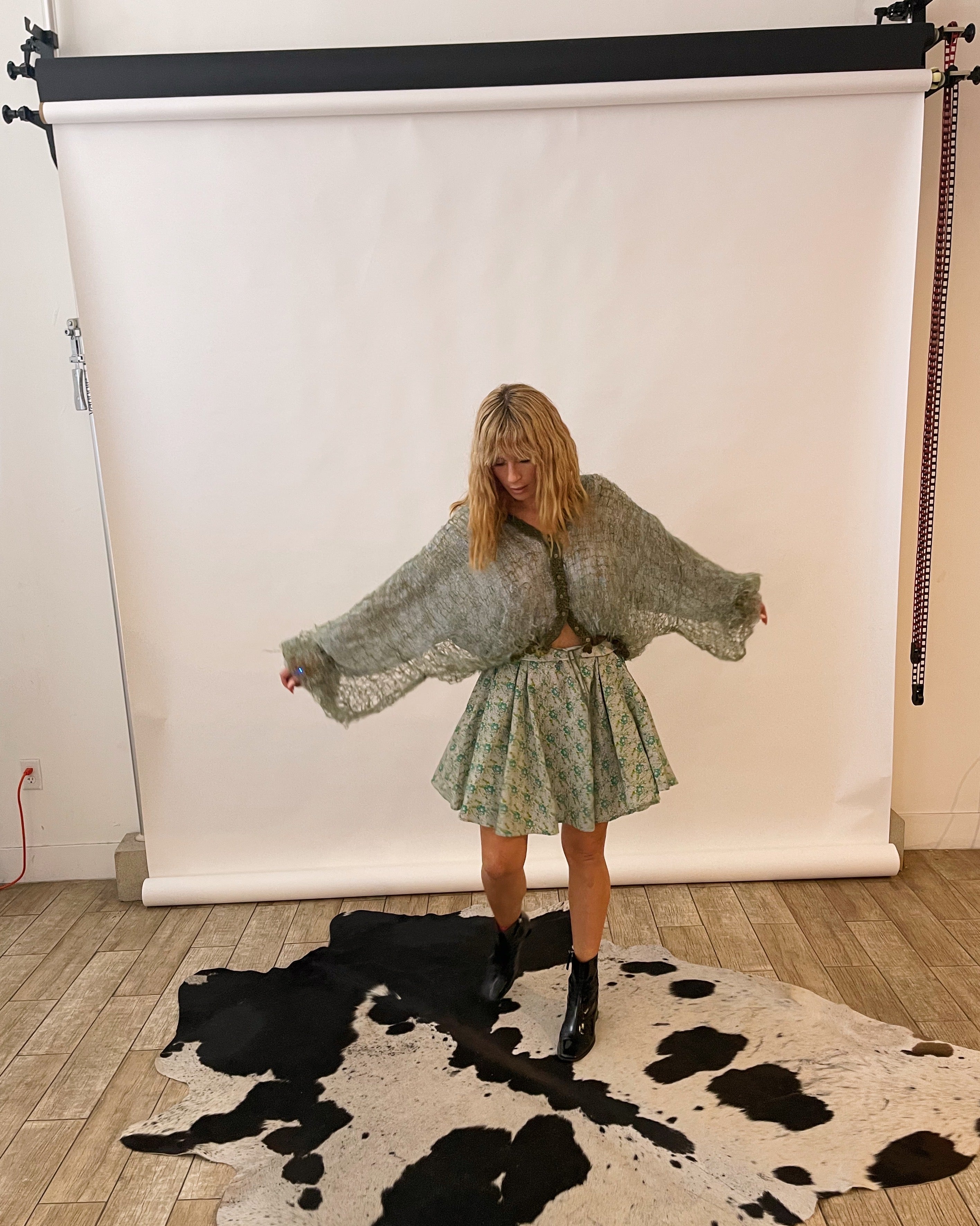 Midi Length Skirt - Waist is rolled up to appear shorter in a few images
