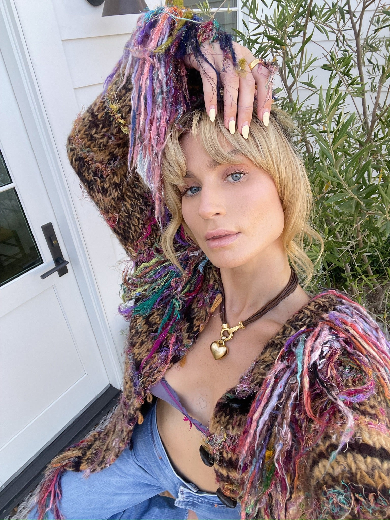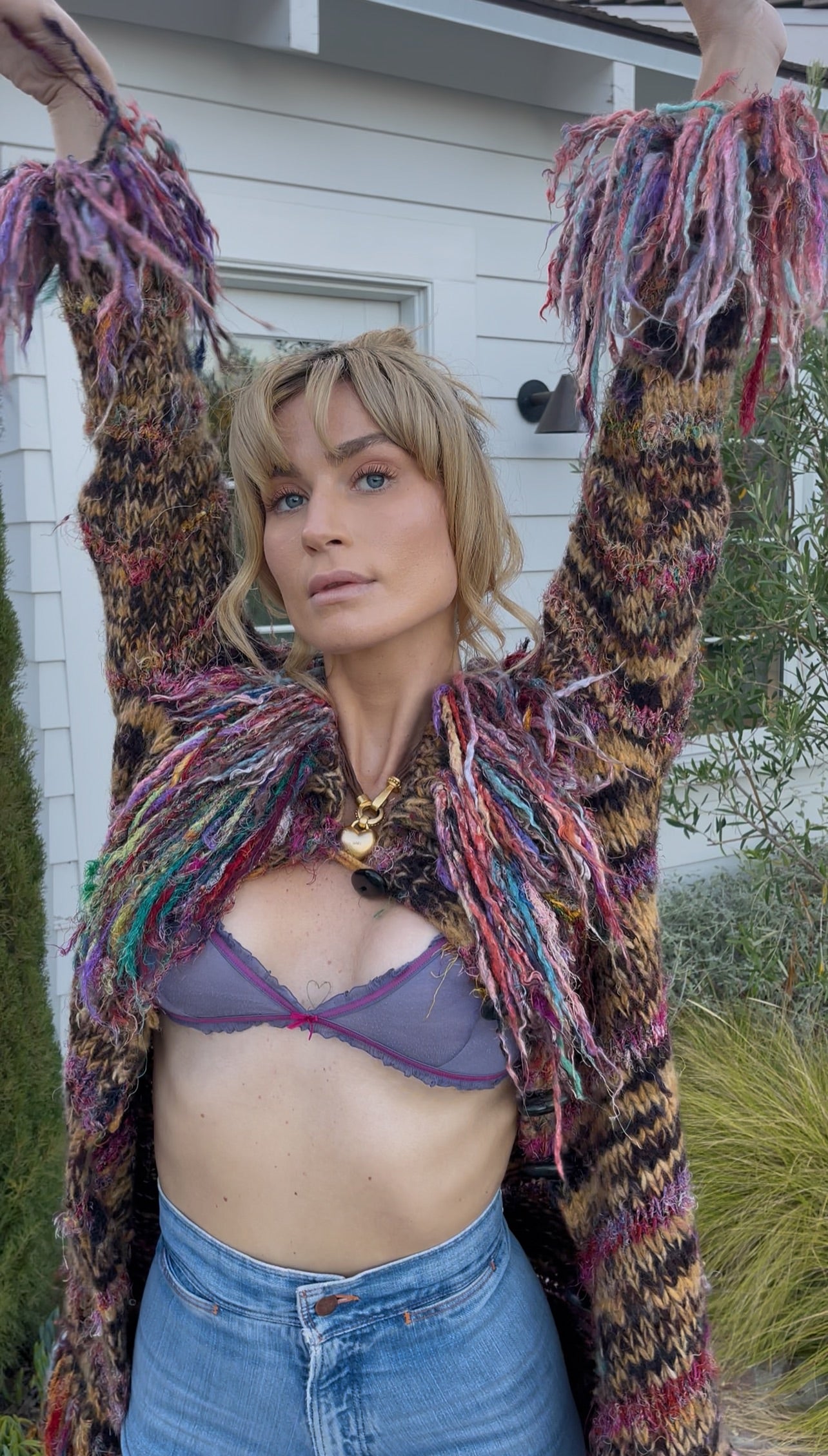 70s Vintage Art To Wear Hand Knit Striped Fringe Duster Jacket