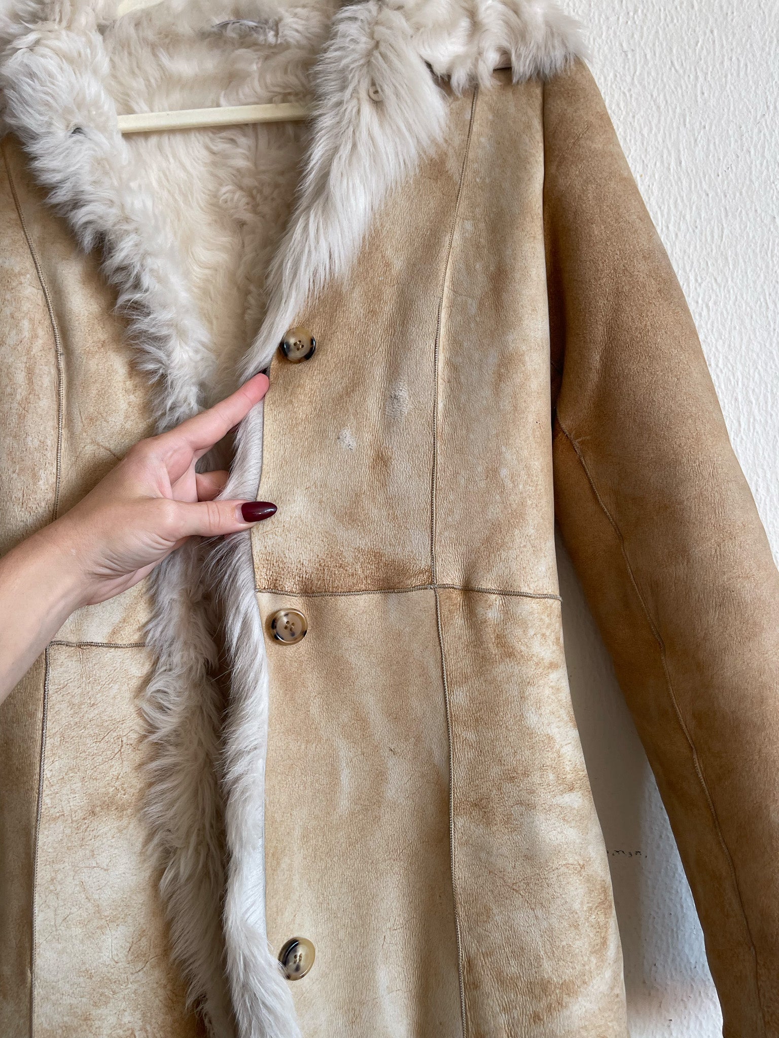 Genuine shearling (suede exterior, full lamb fur lining)
