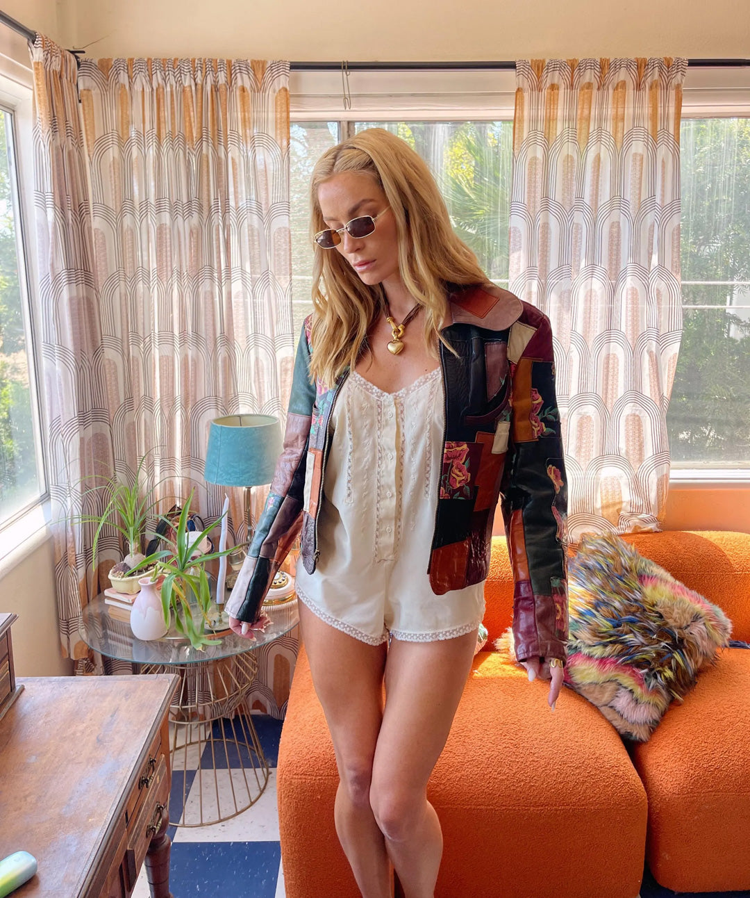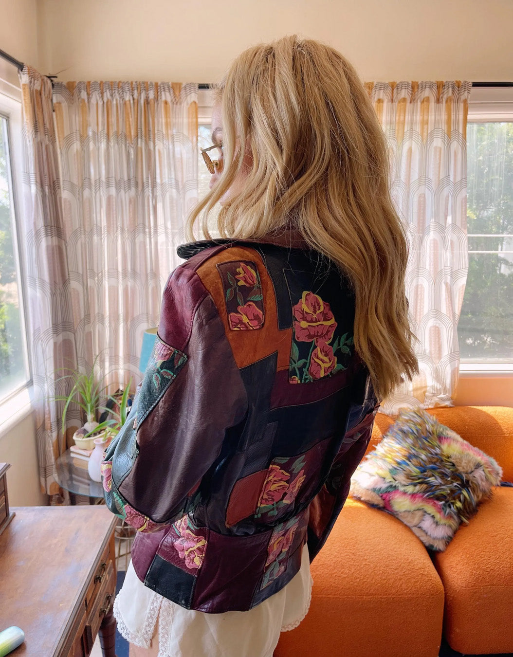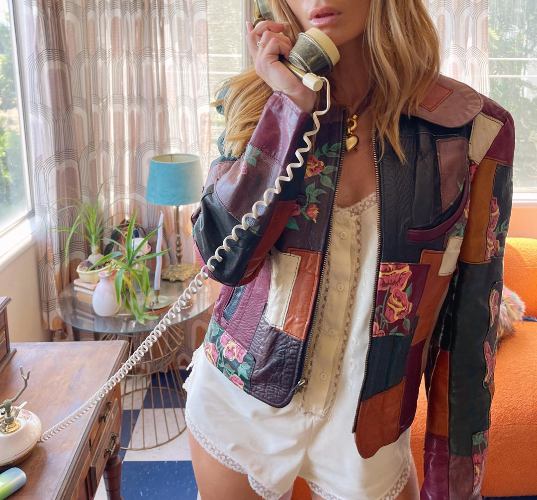 70s Vintage Gandolf the Wizard Detroit Patchwork Leather Cropped Jacket Floral Design Rare Collectable