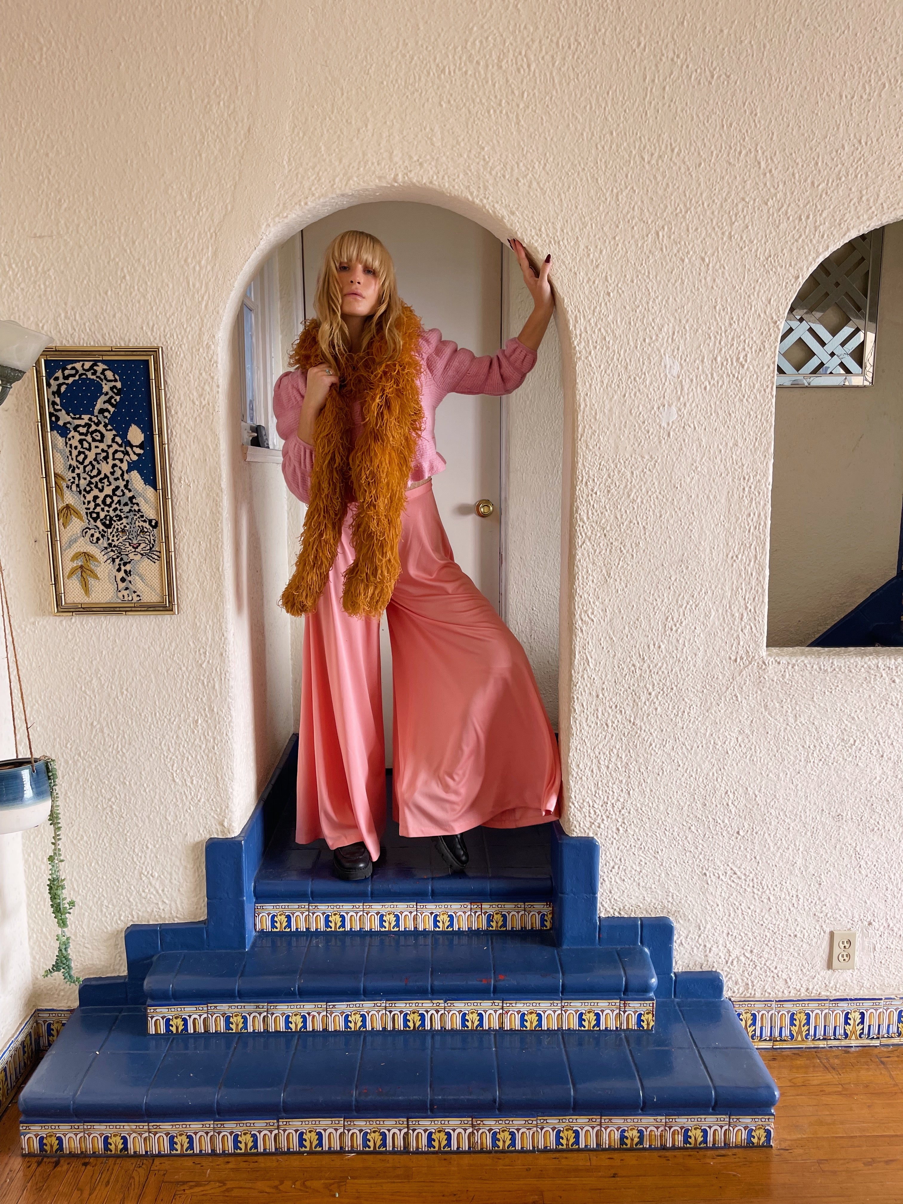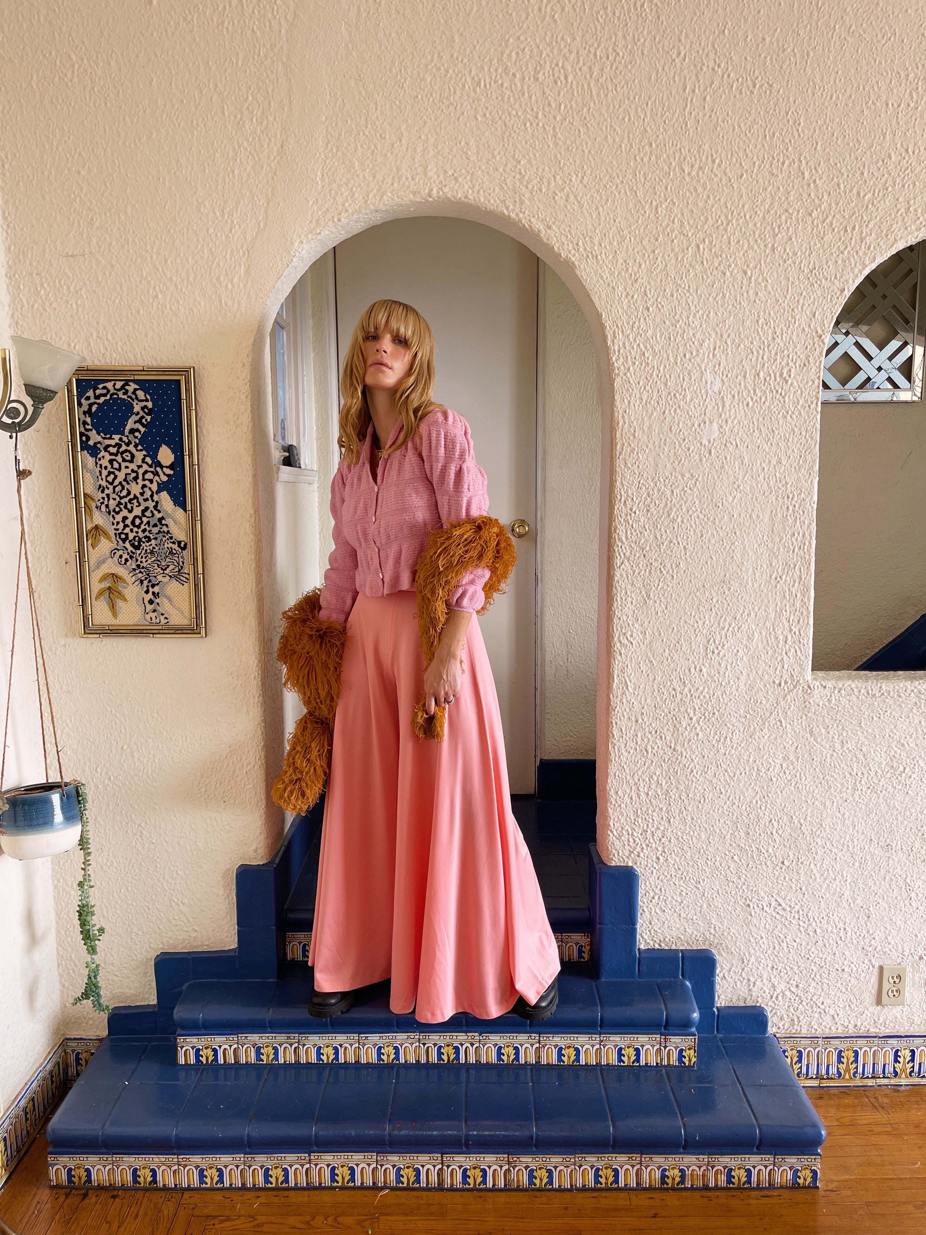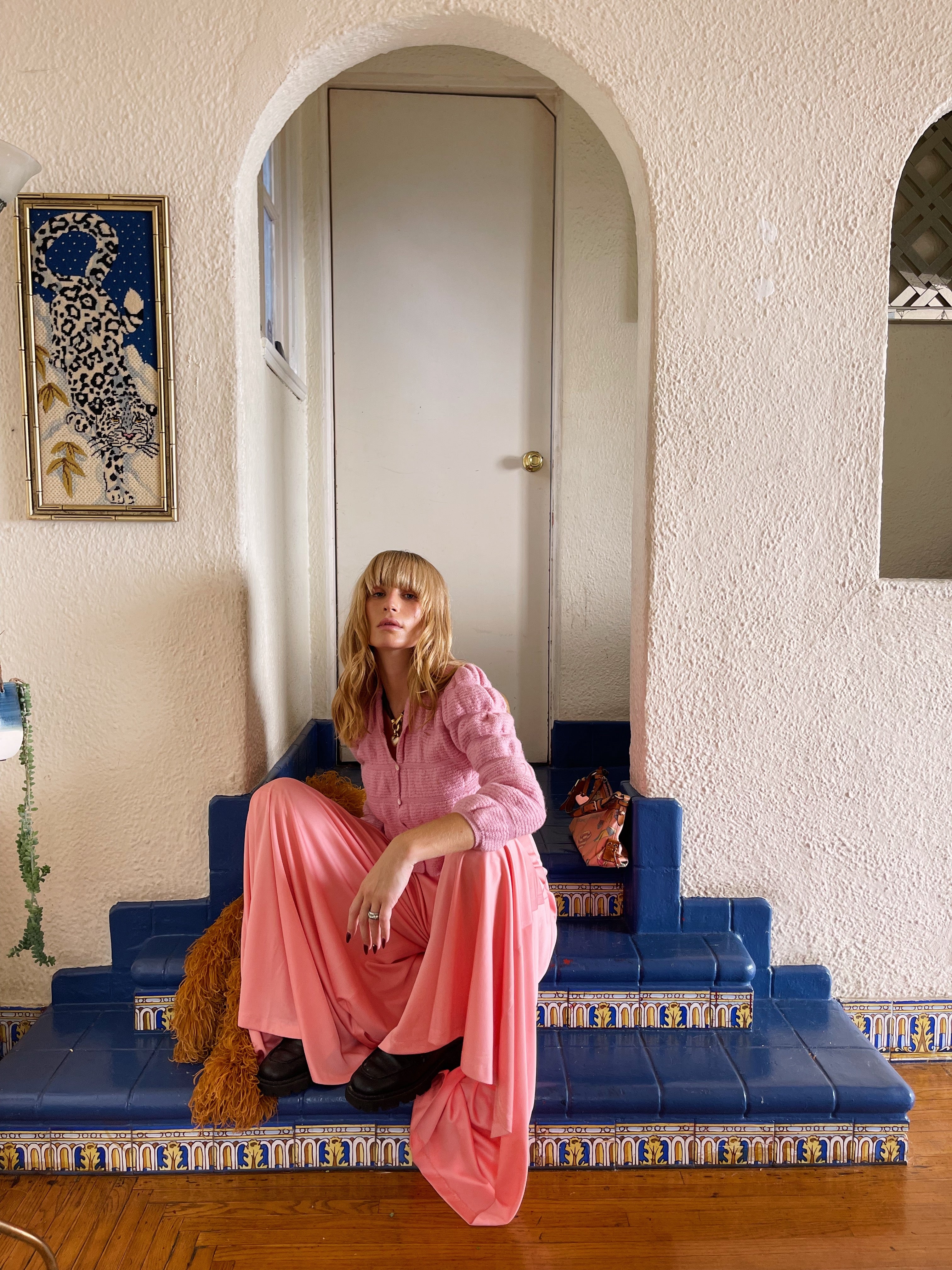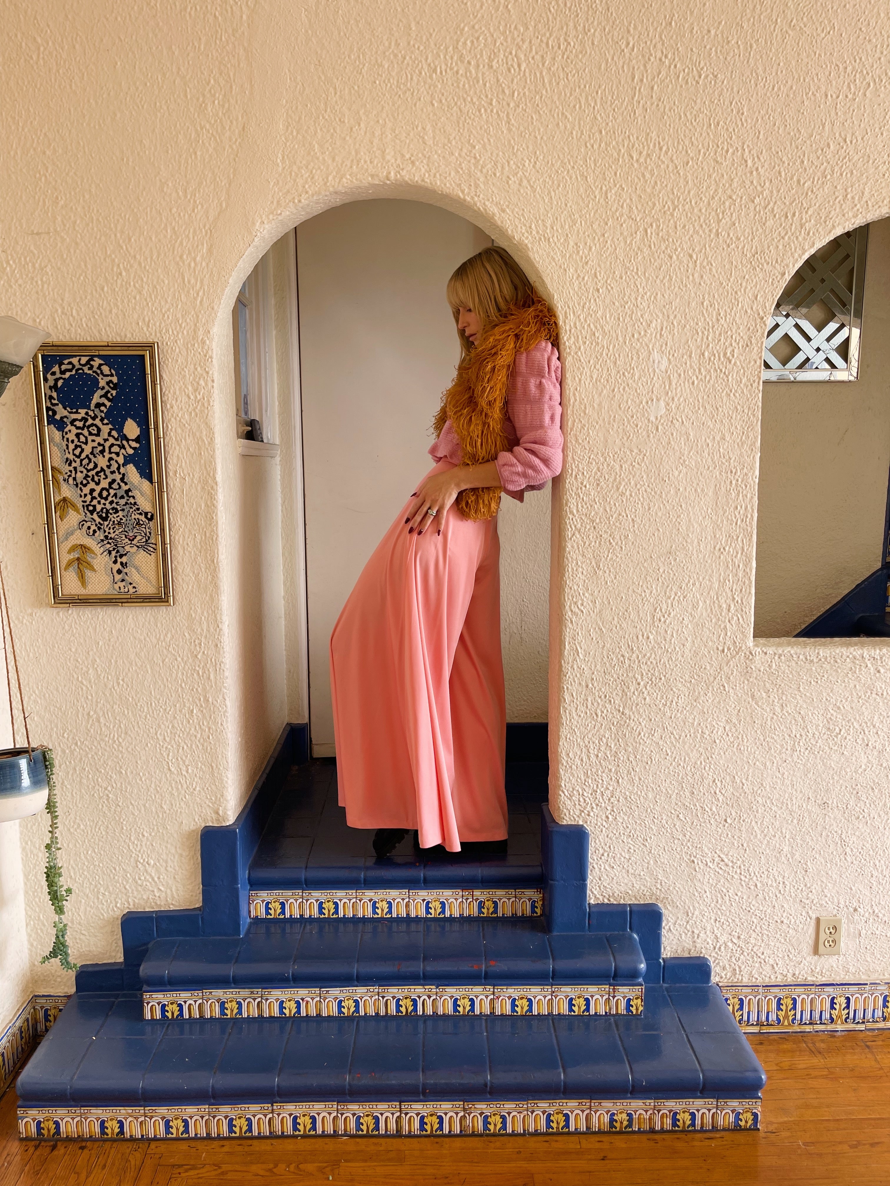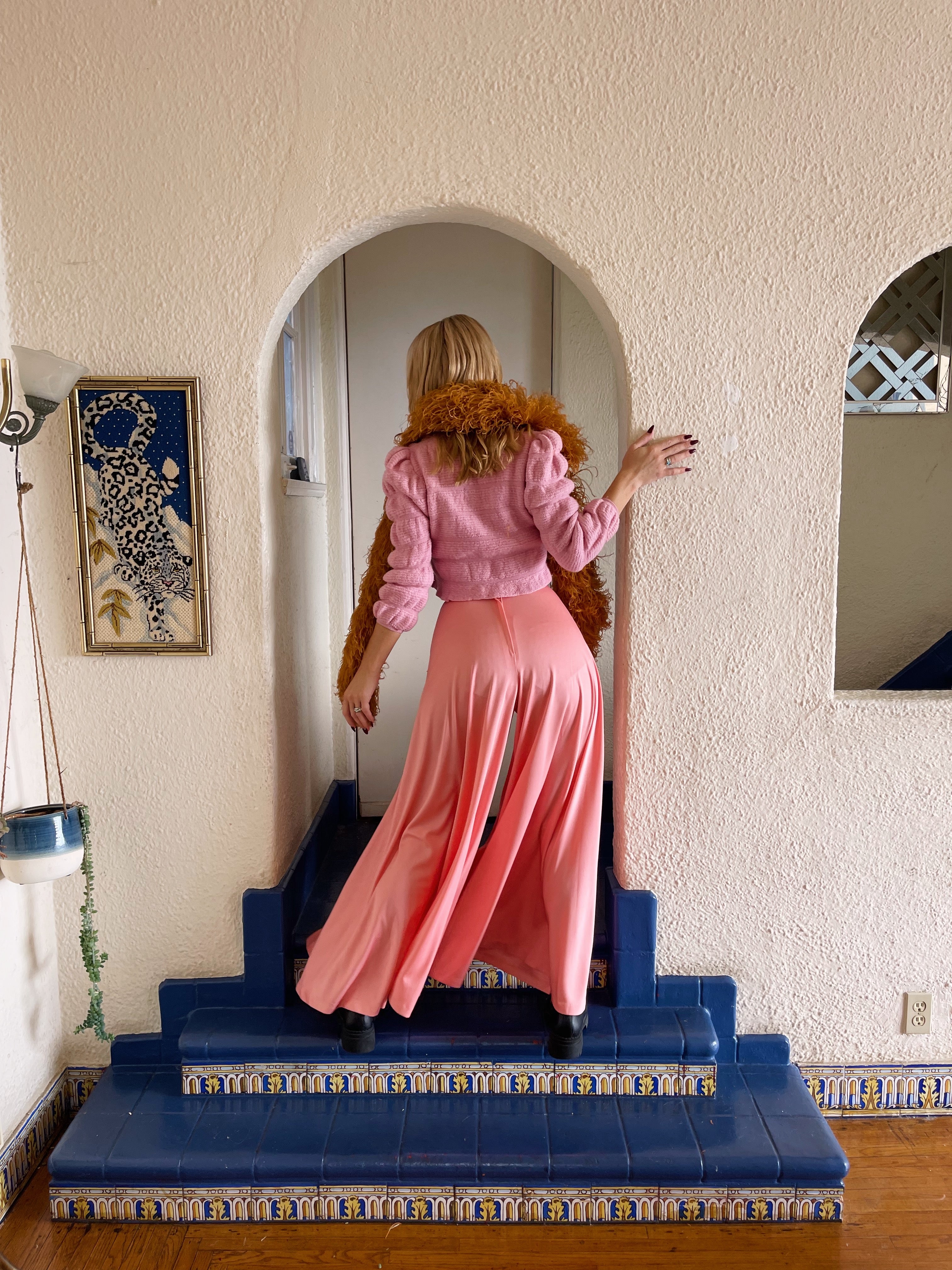 70s Vintage Rare Lillie Diamond Bubblegum Pink Palazzo Wide Leg Lounge Pant