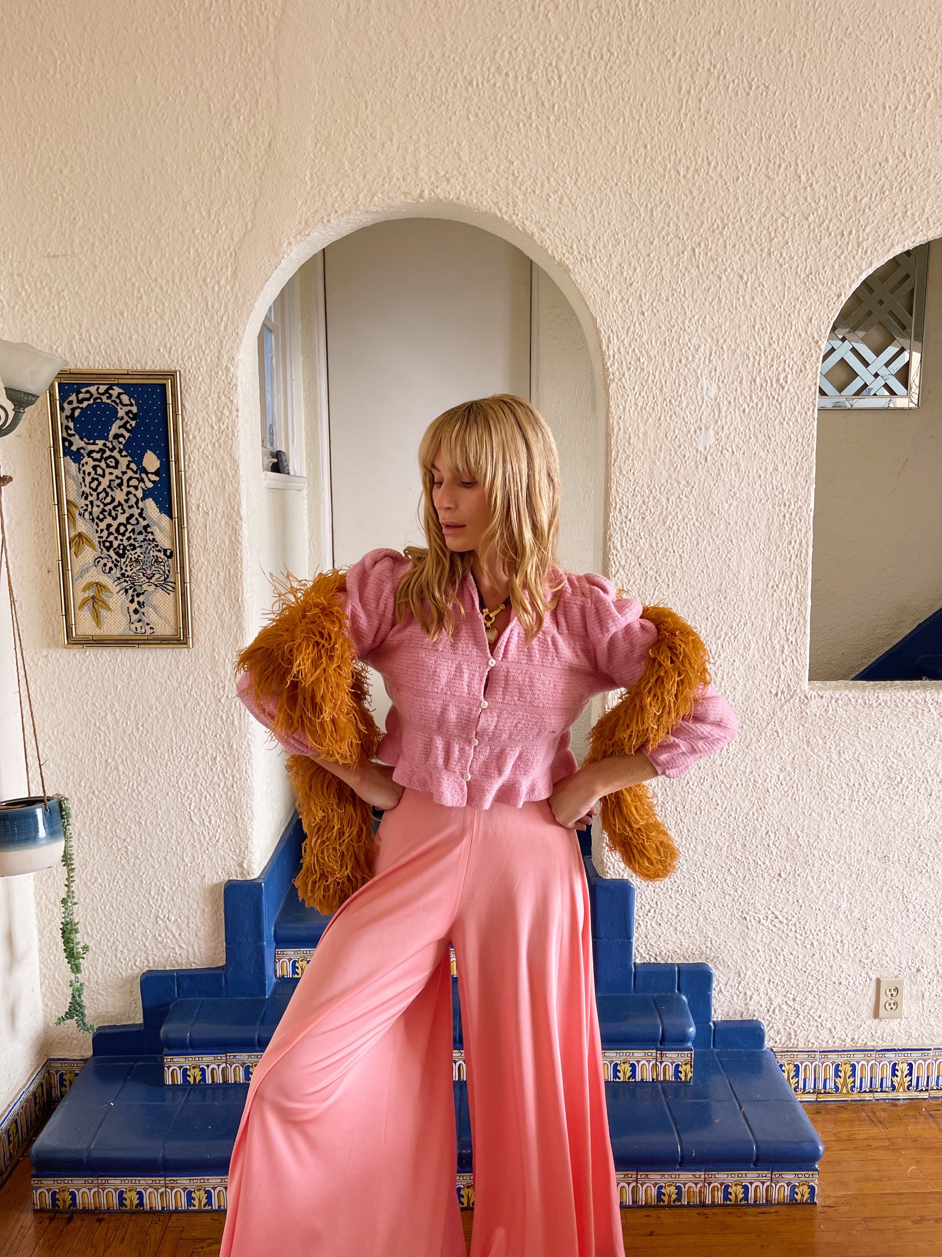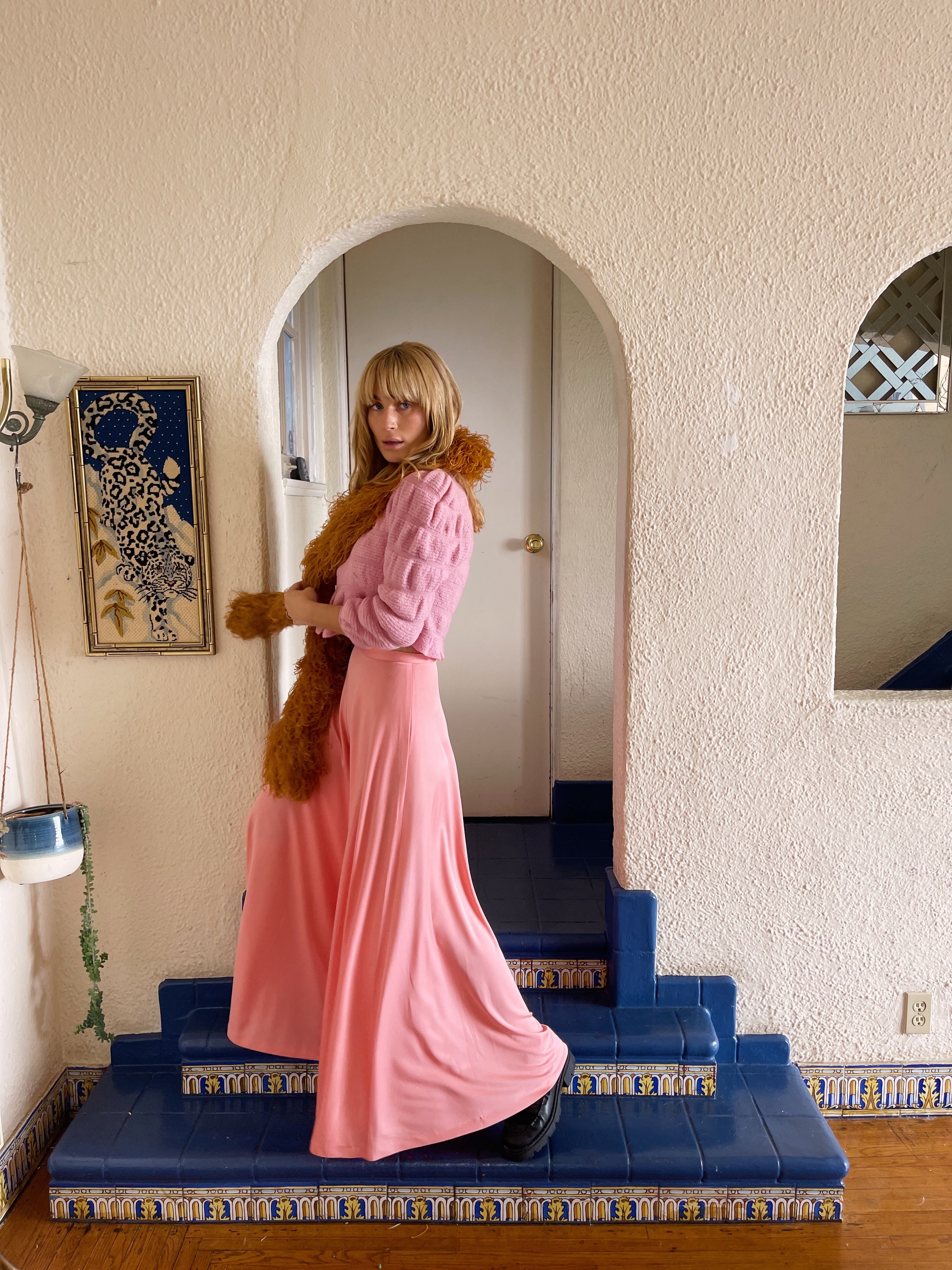 70s Vintage RARE Sonia Rykiel for Bergdorf Goodman Italian Pink Mohair Angora Long Cardigan