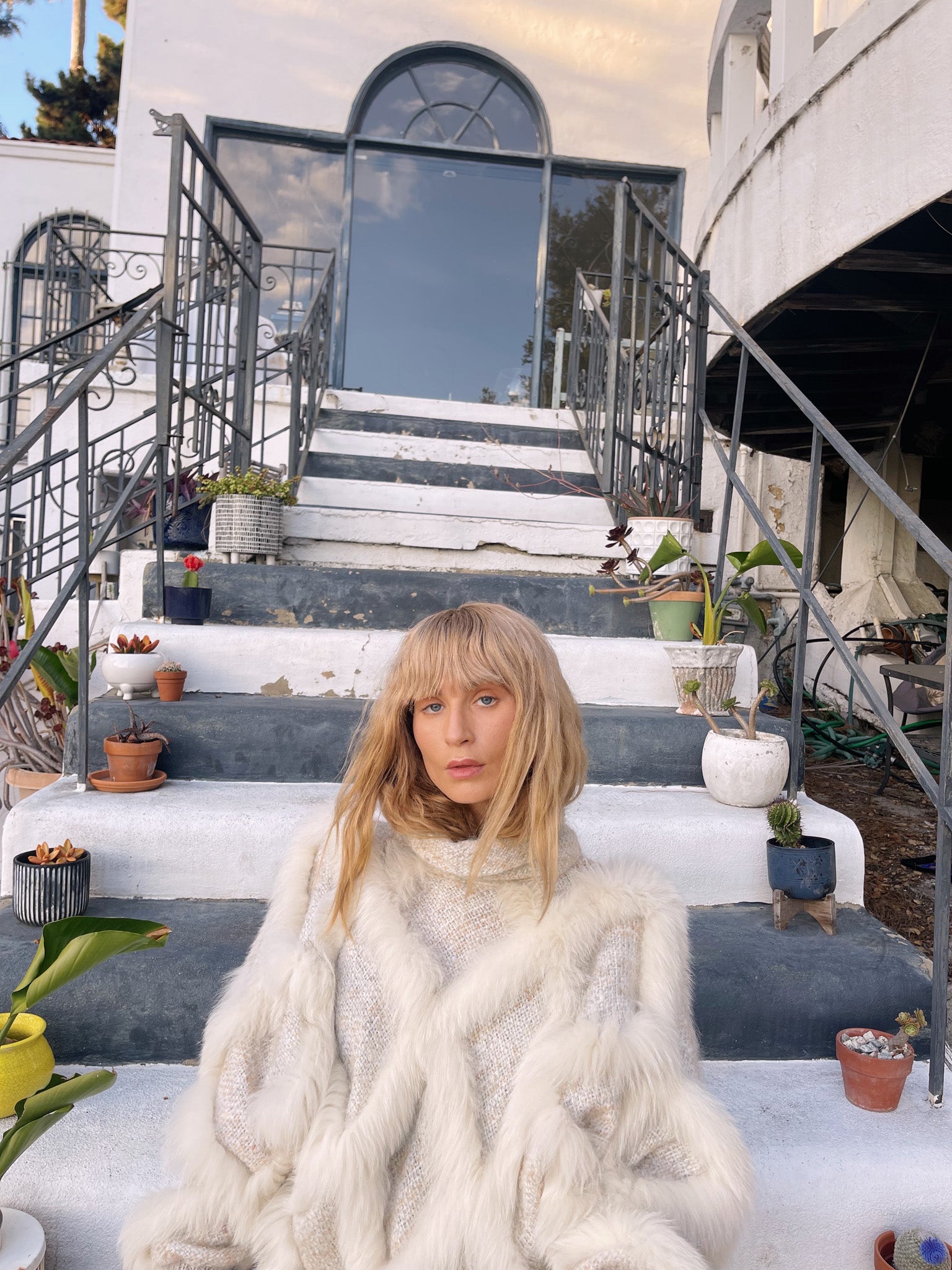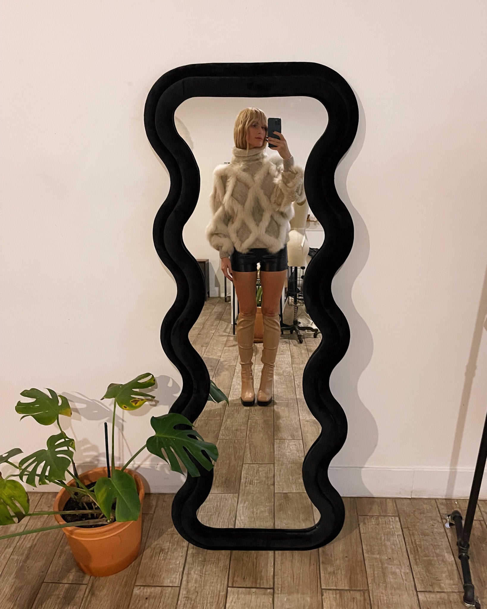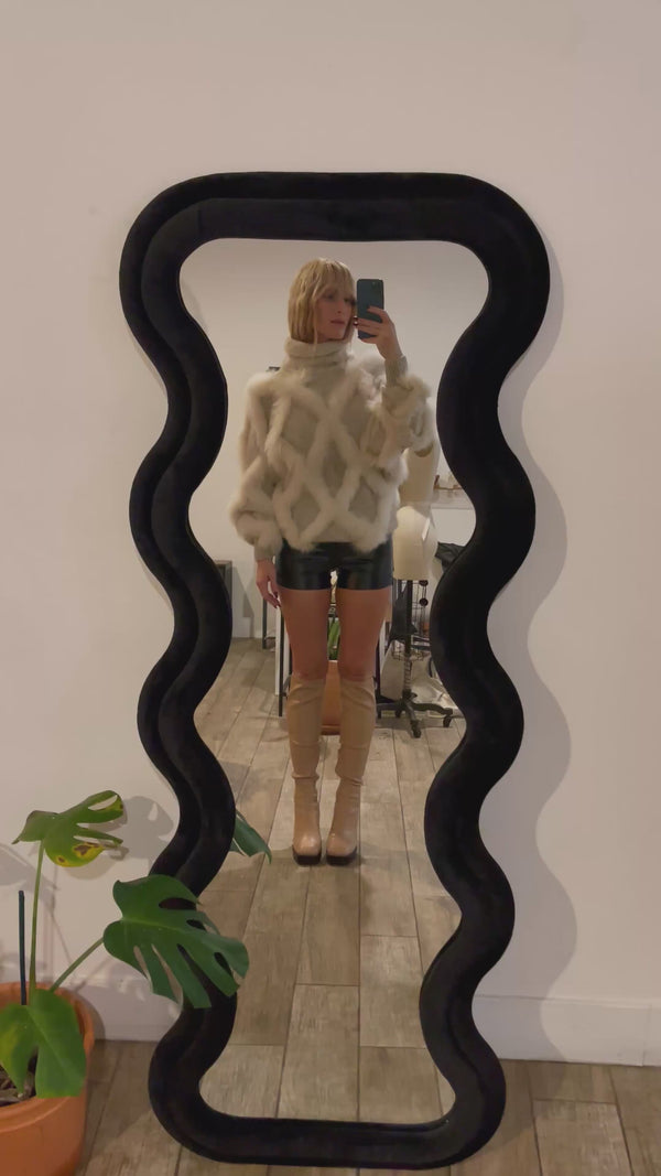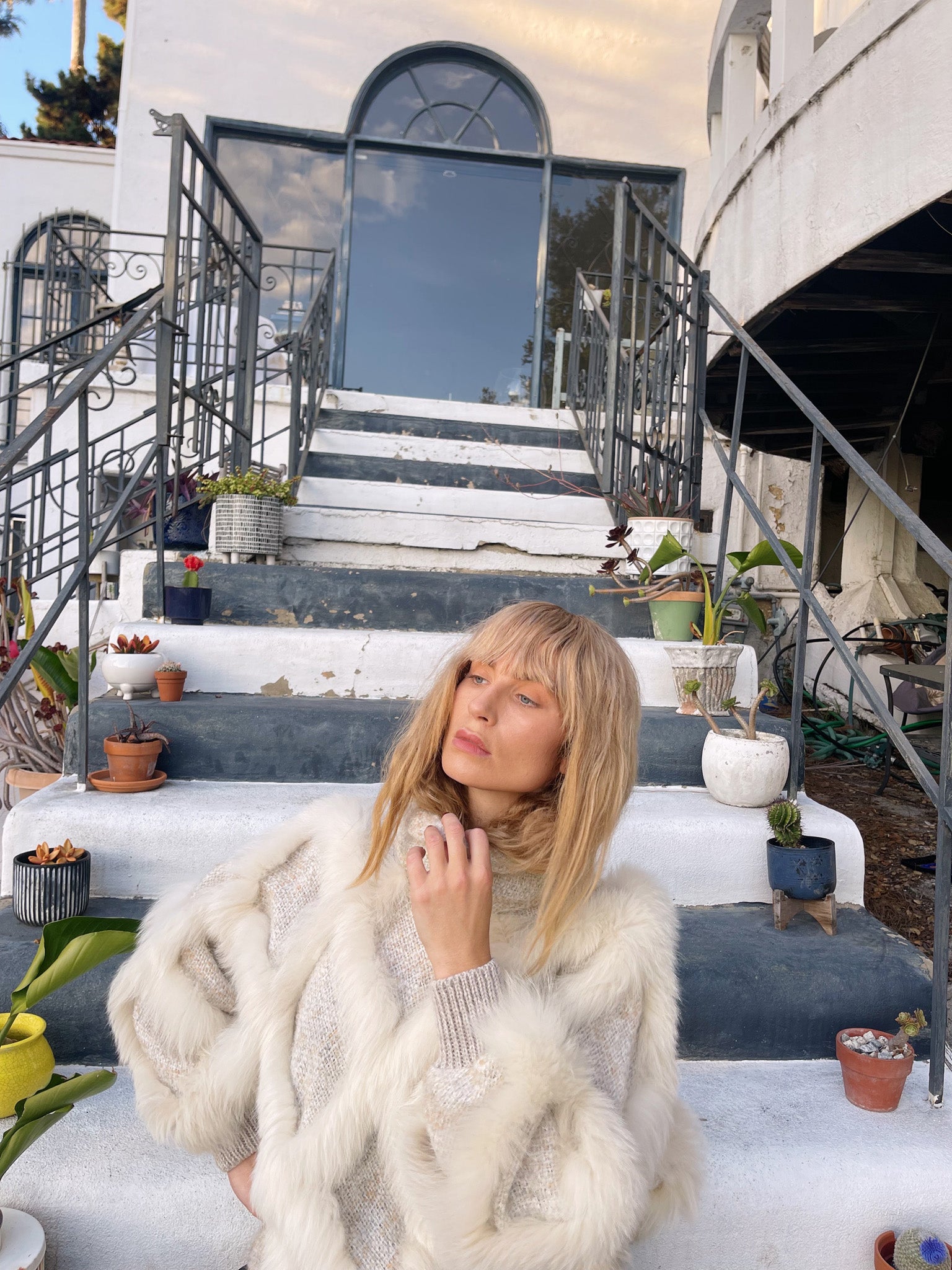 Rare vintage Schjelde turtleneck sweater — a sculptural blend of soft knit and luxe fox fur trim that feels straight off a 80s runway in the Alps. The mix of cozy boucle texture and dimensional fur paneling gives it that understated editorial drama.