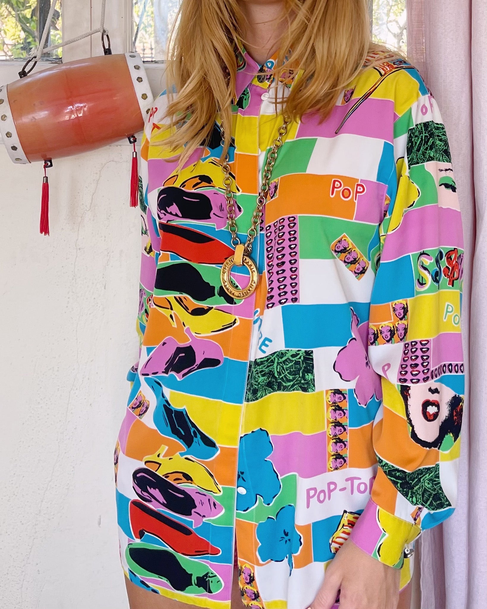90s Vintage ANDY WARHOL x LOUIS FÉRAUD Rare Pop Art Marilyn Monroe Silk Blouse | Vibrant Multicolor Collector Print