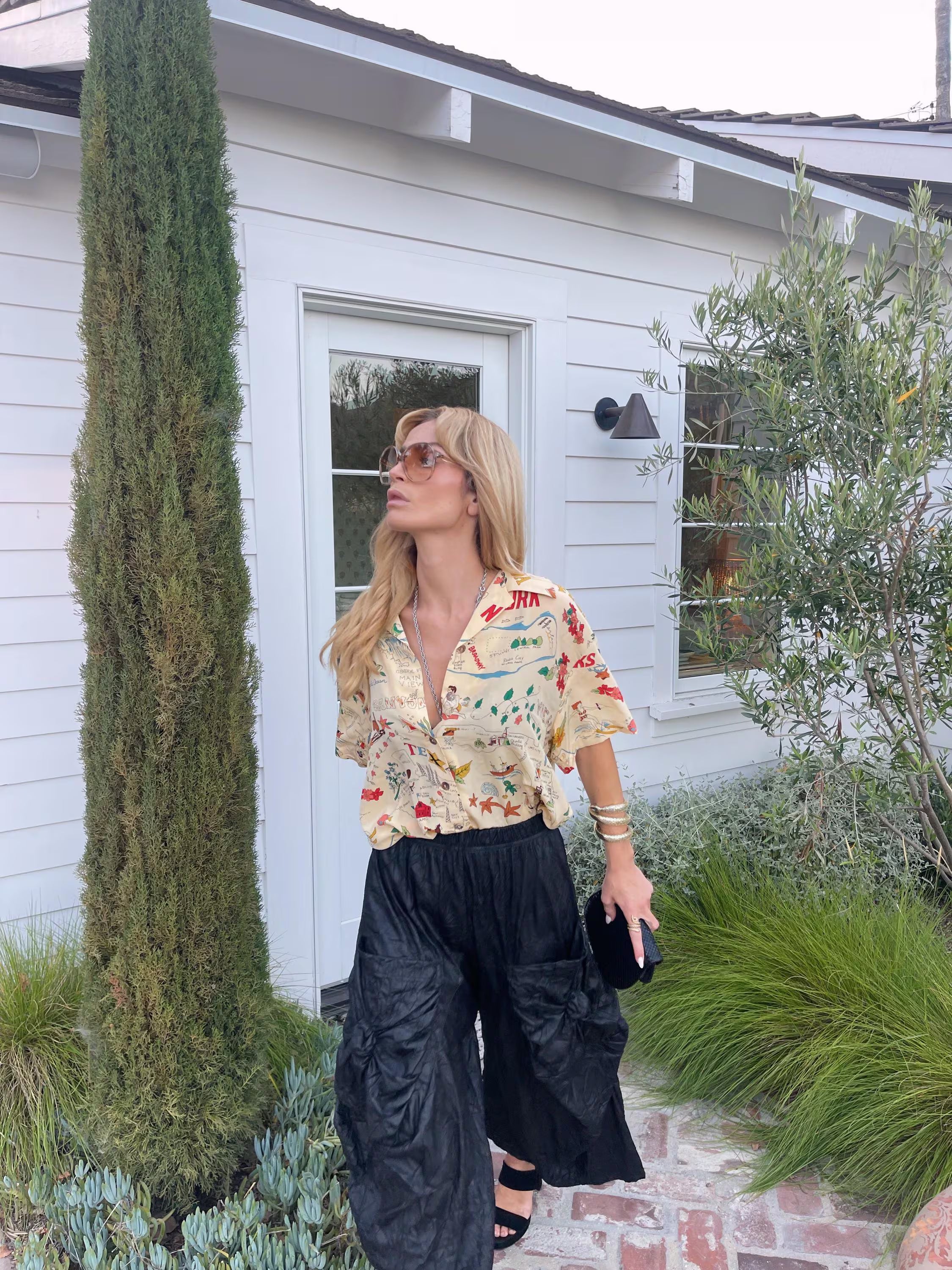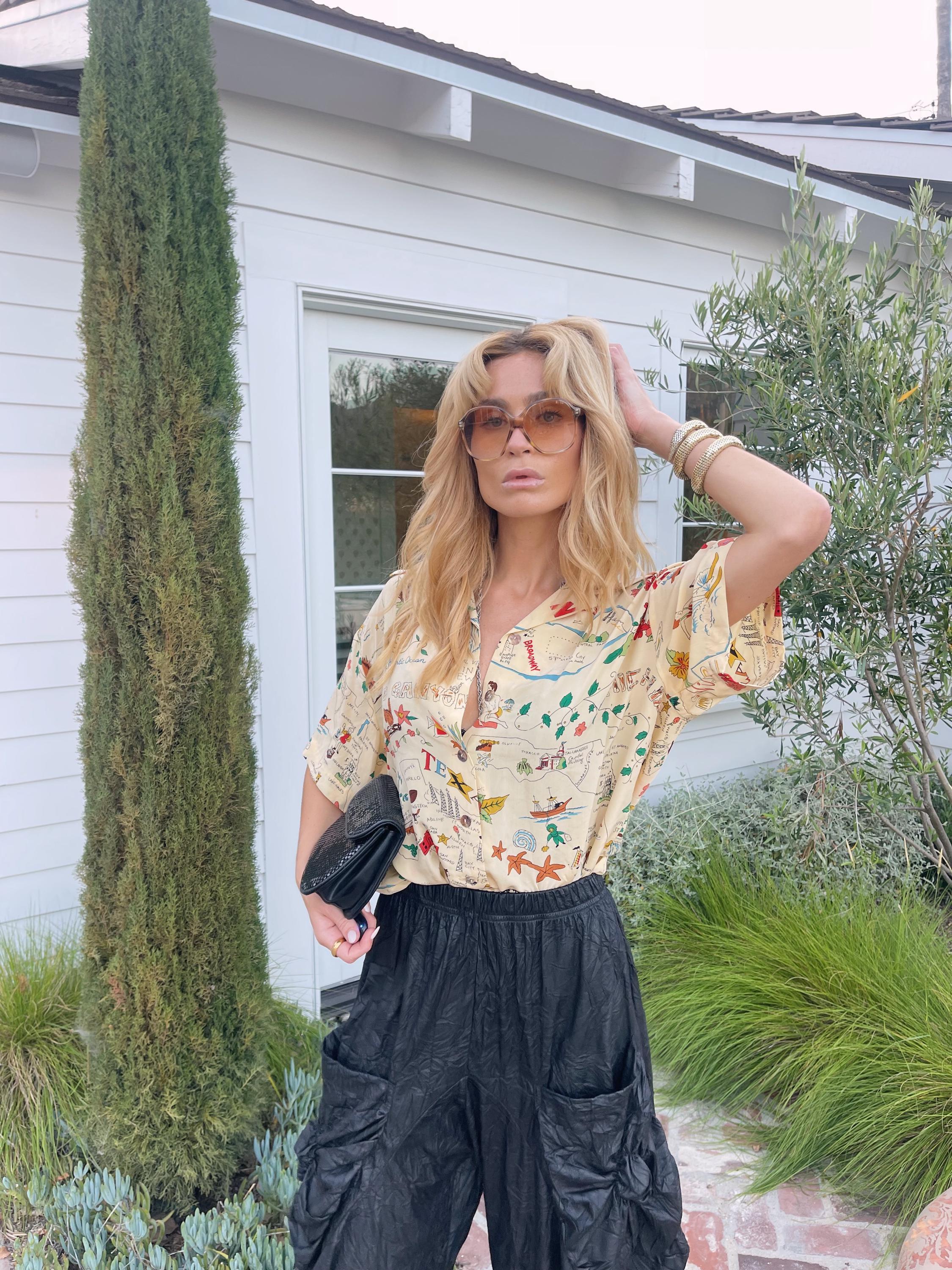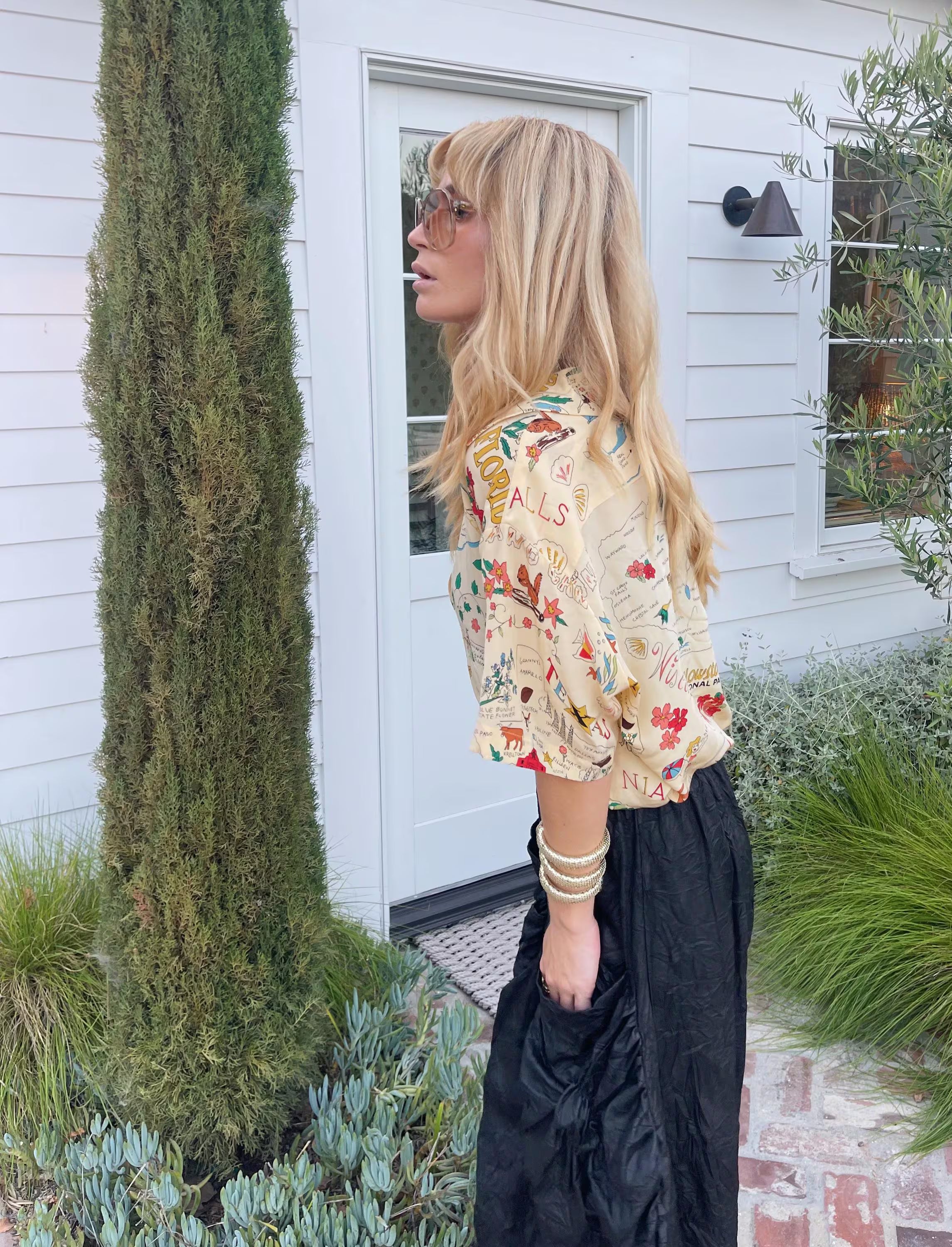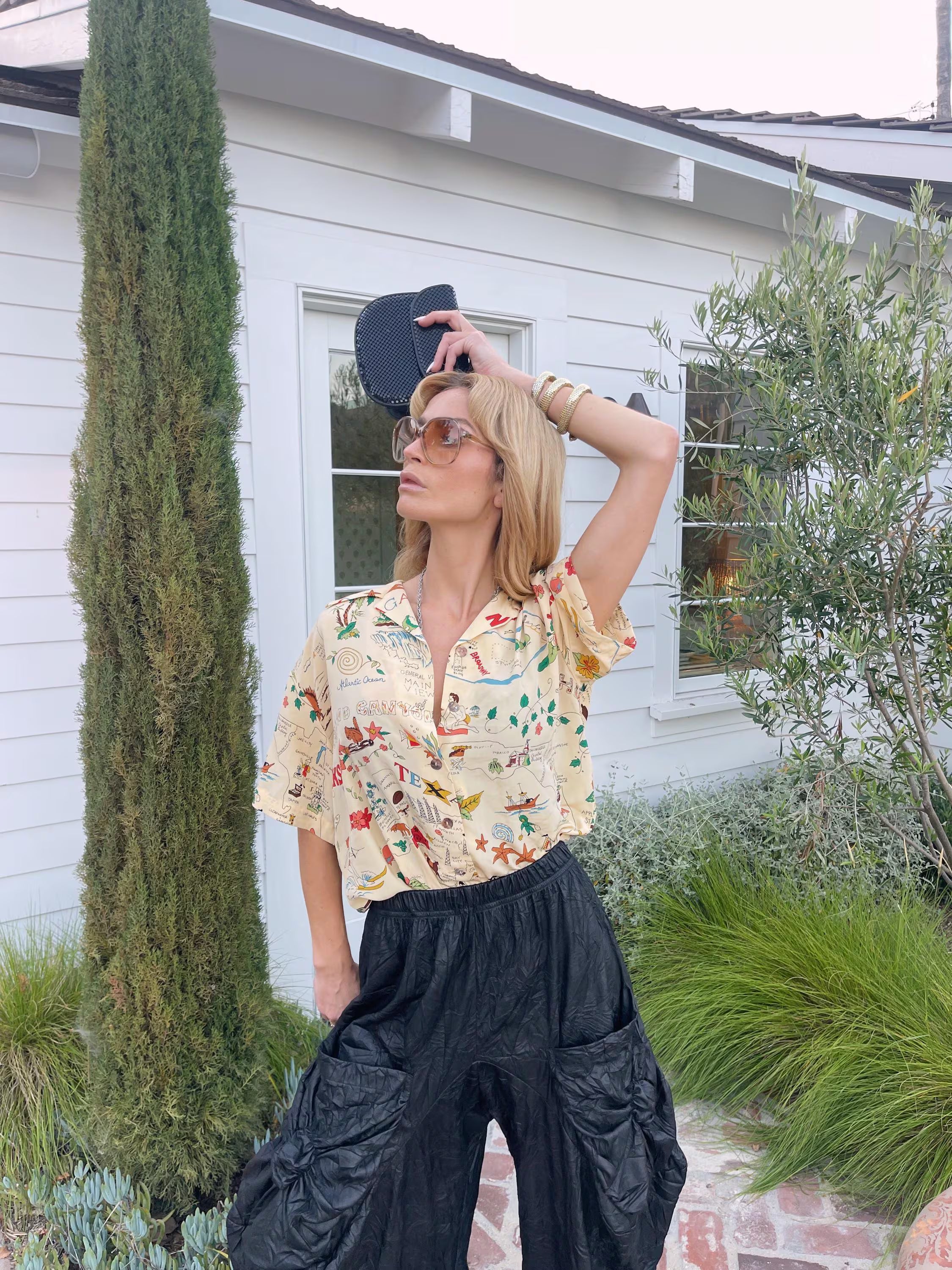90s Vintage by Todd Oldham Silk Novelty Map of America Button Down | Resort Style Blouse Rare VTG