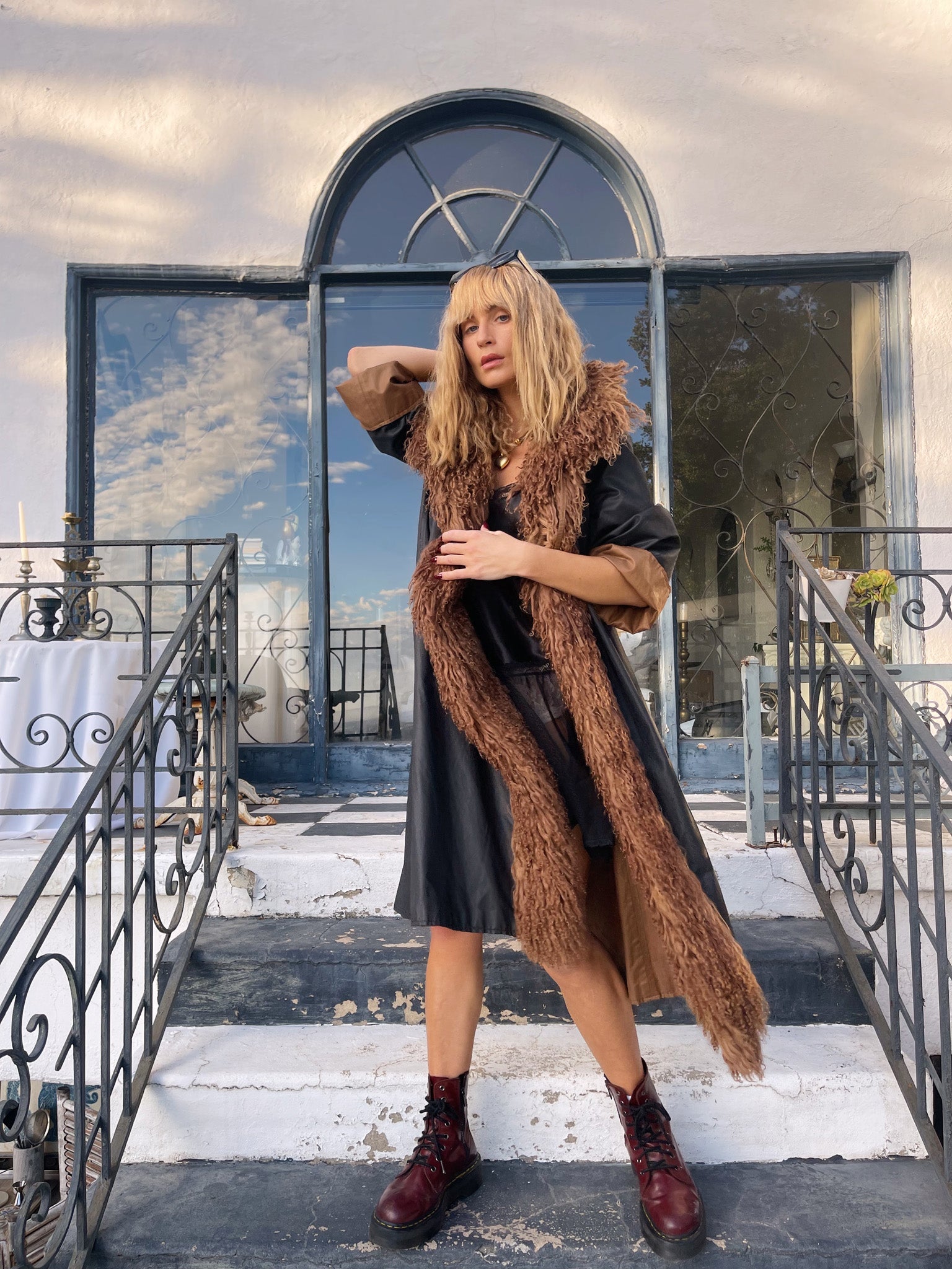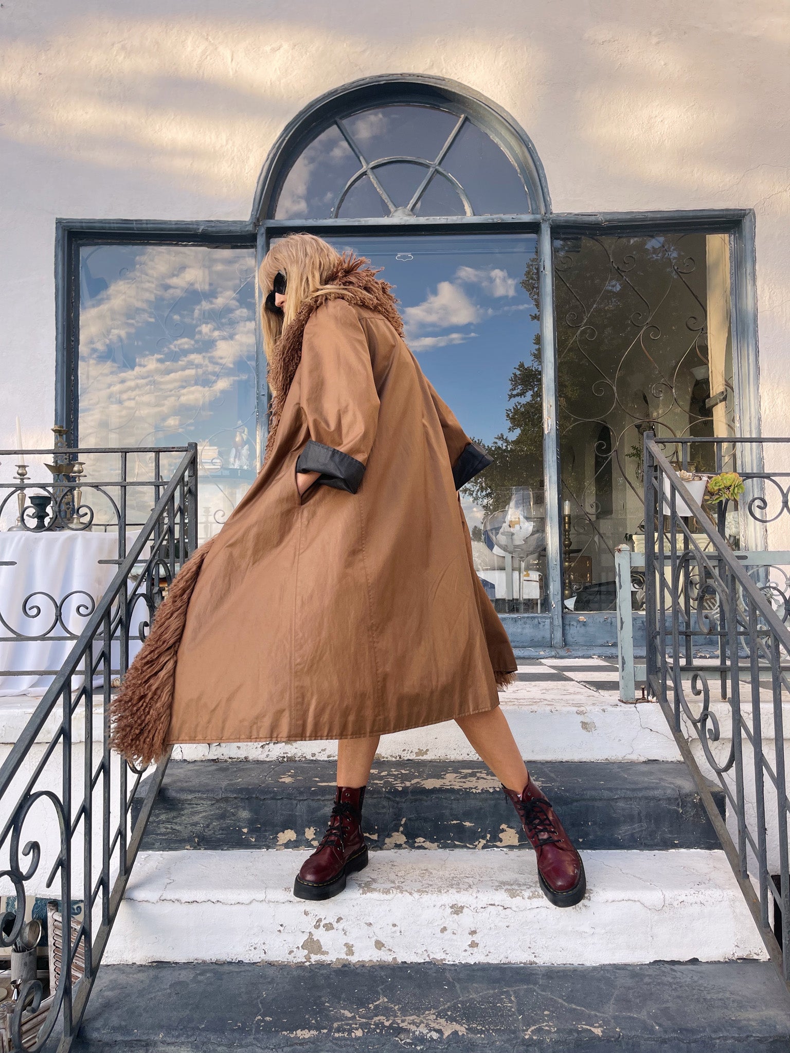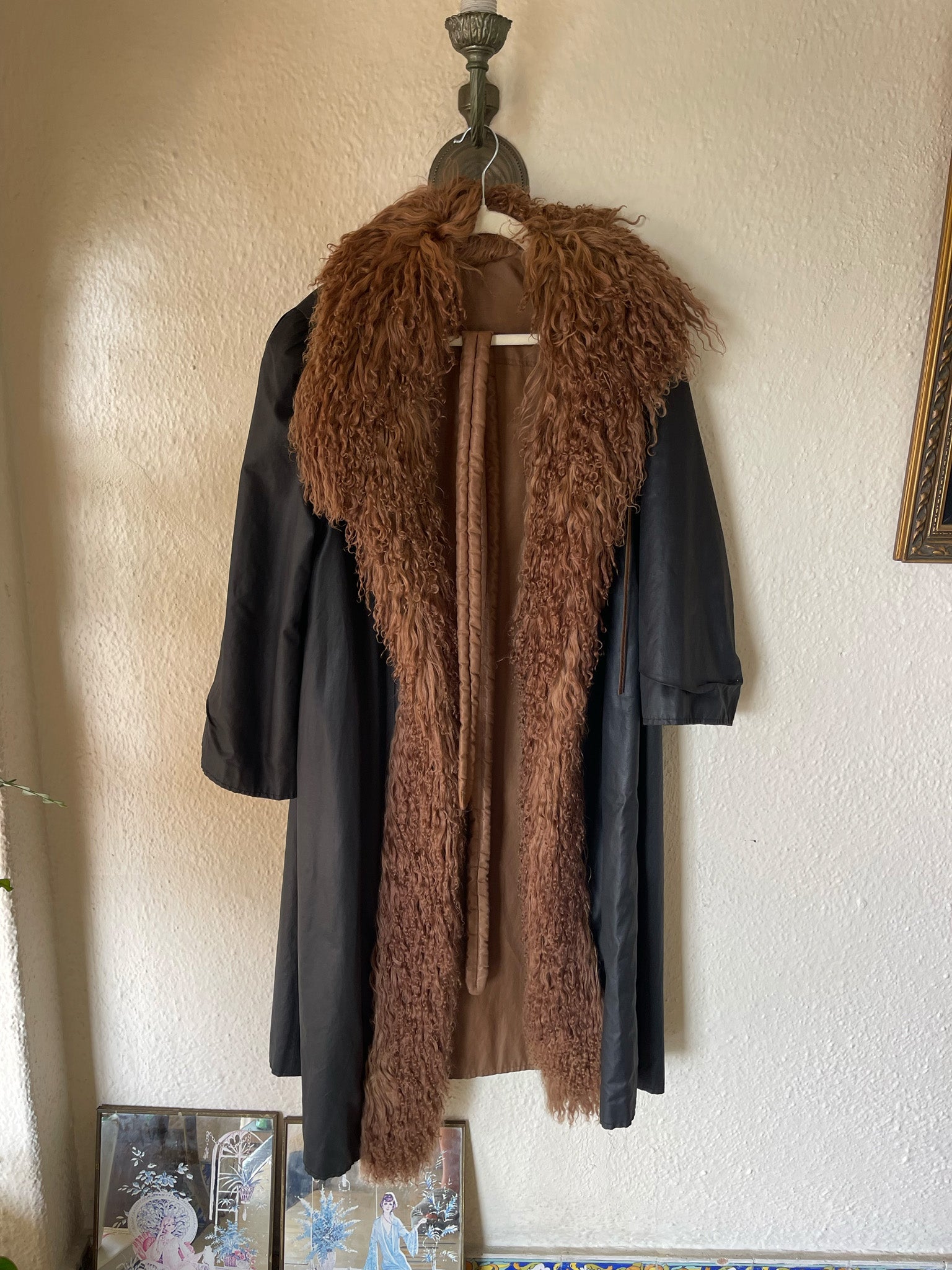 Once-in-a-lifetime vintage FENDI reversible maxi coat — crafted in cocoa brown and inky black with a decadent Mongolian curly lamb trim, wearable on both sides for two distinct luxury looks in one.