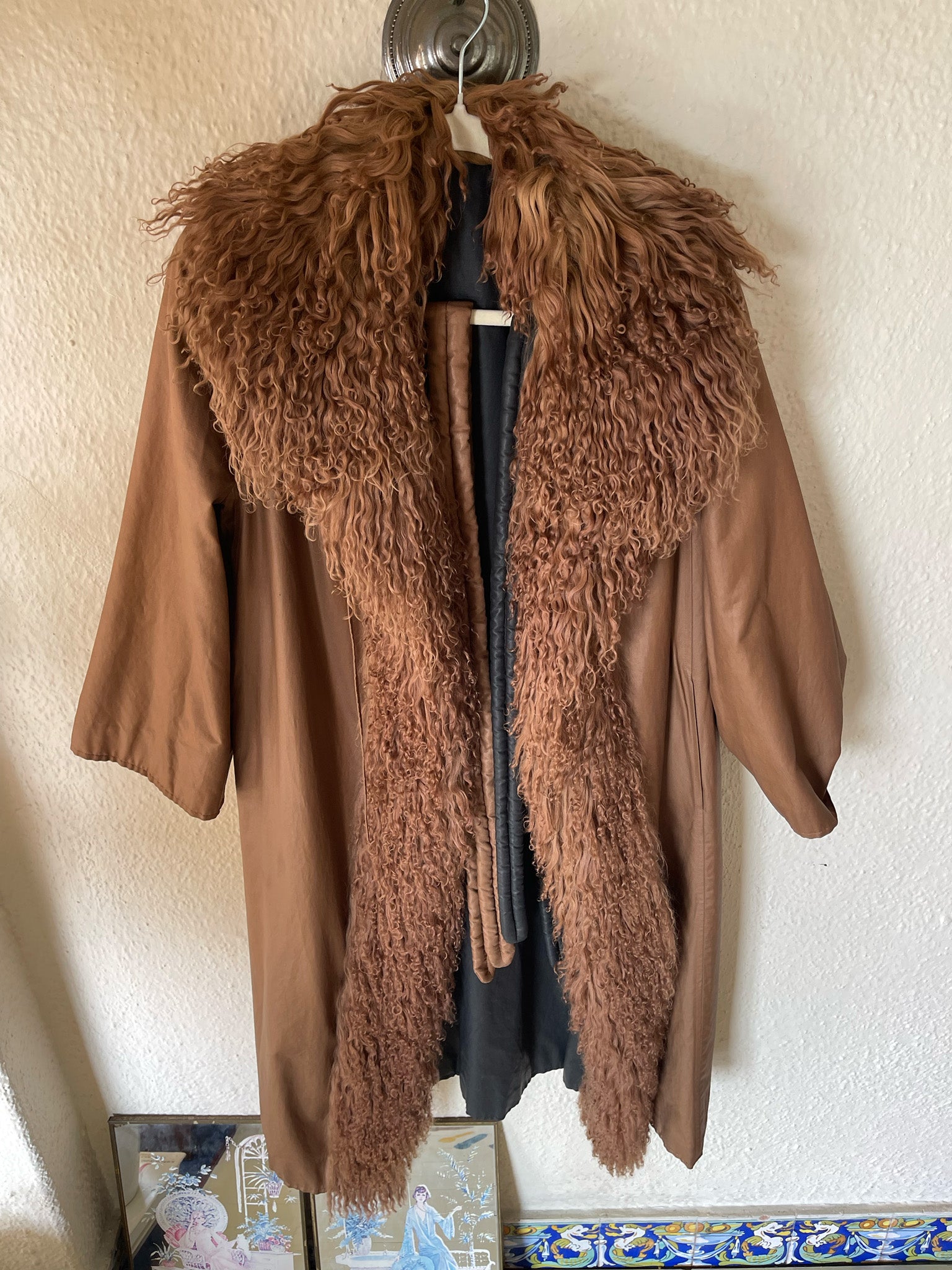 90s Vintage FENDI Rare Reversible Mongolian Curly Lamb Coat | Black & Cocoa Longline Trench