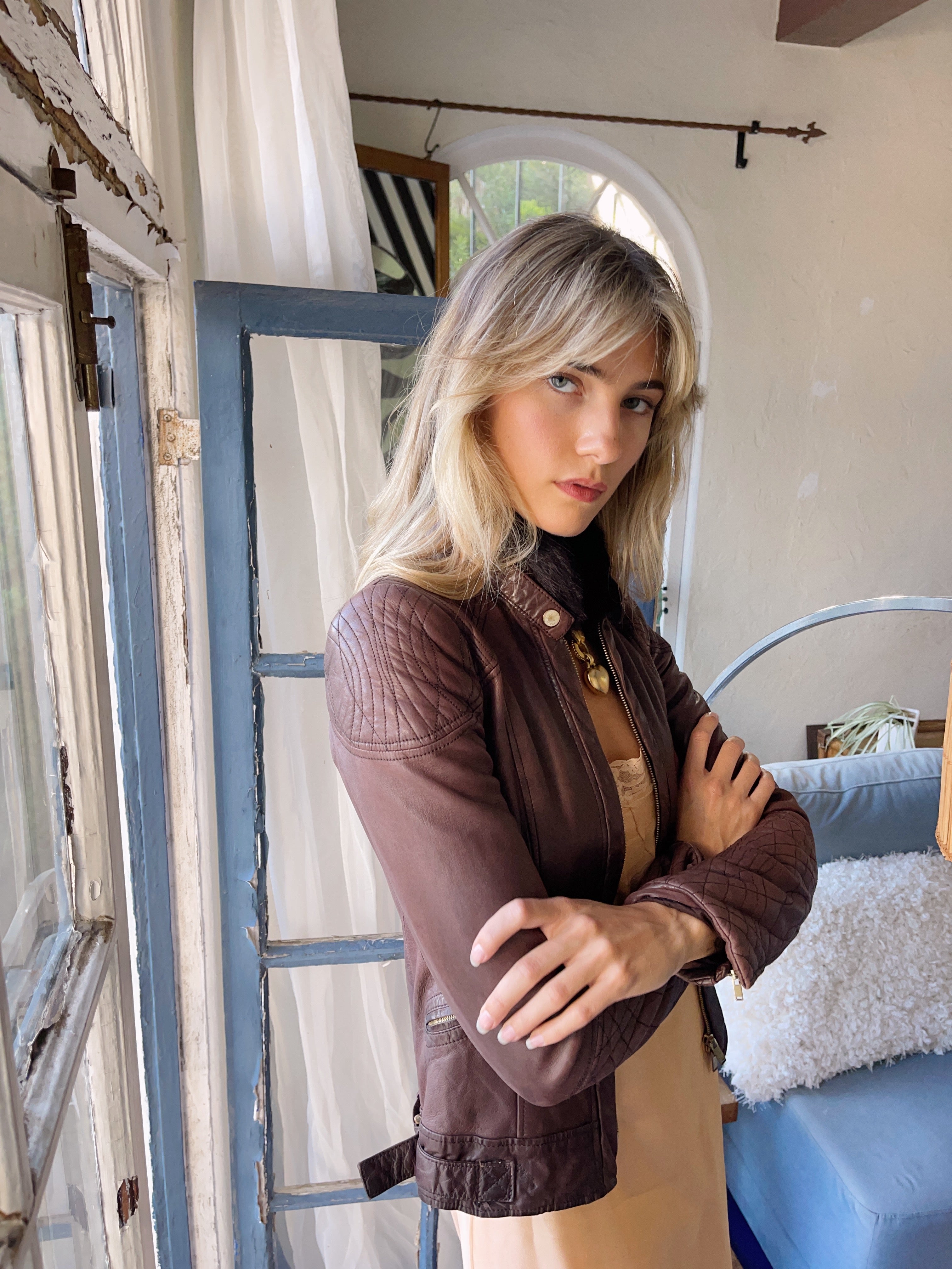 90s Vintage GUCCI Brown Leather Bomber Shearing Moto Jacket
