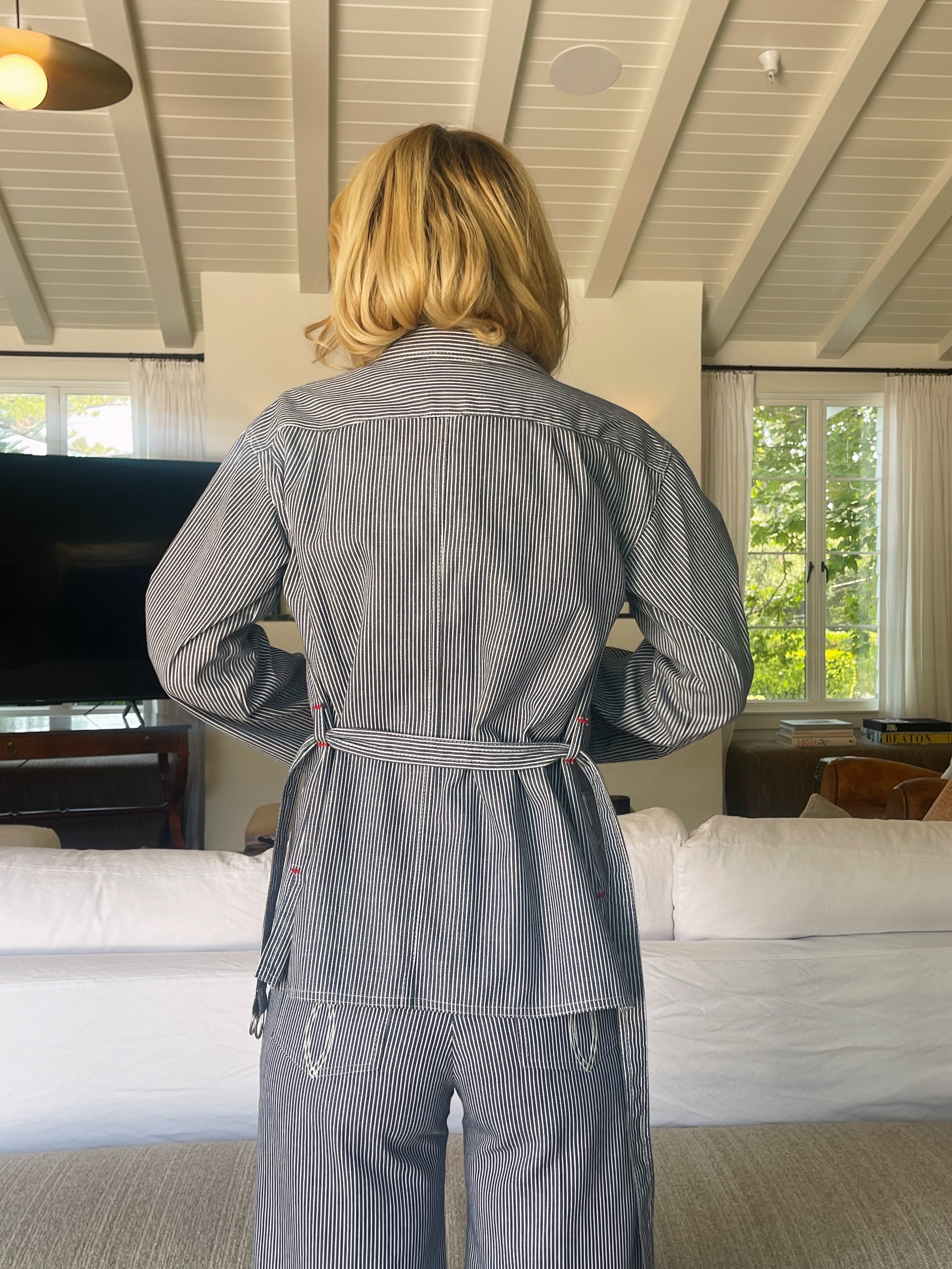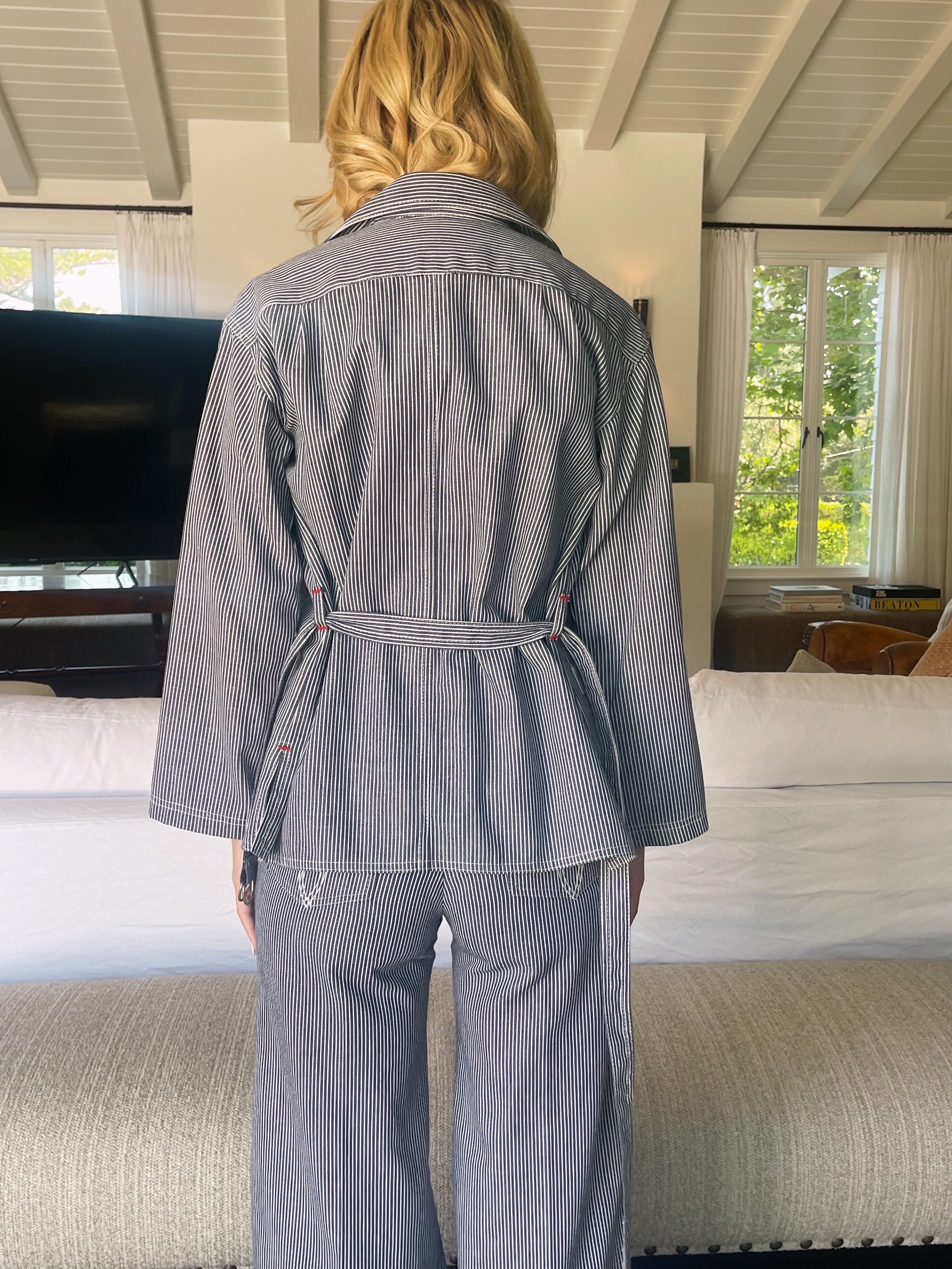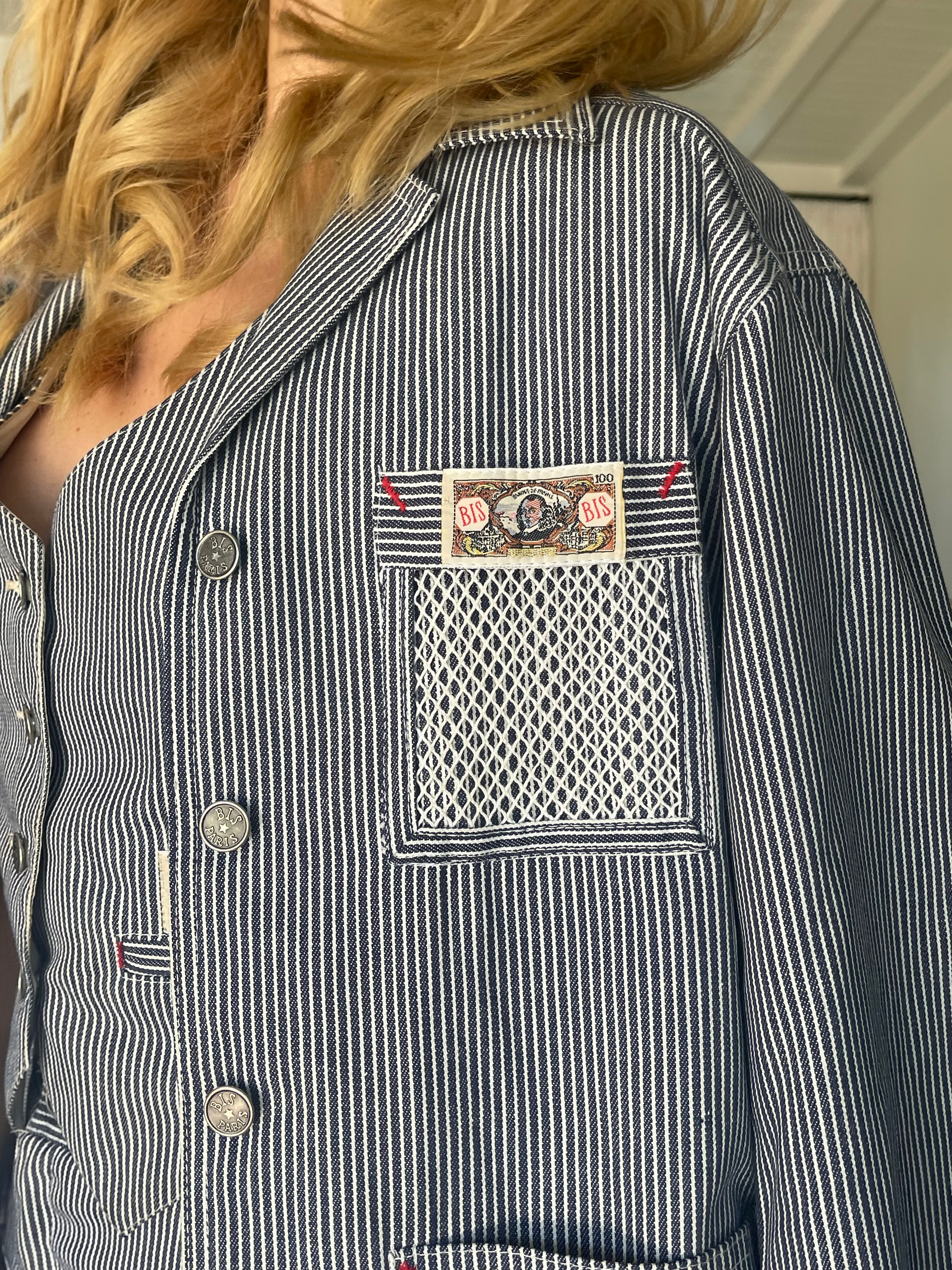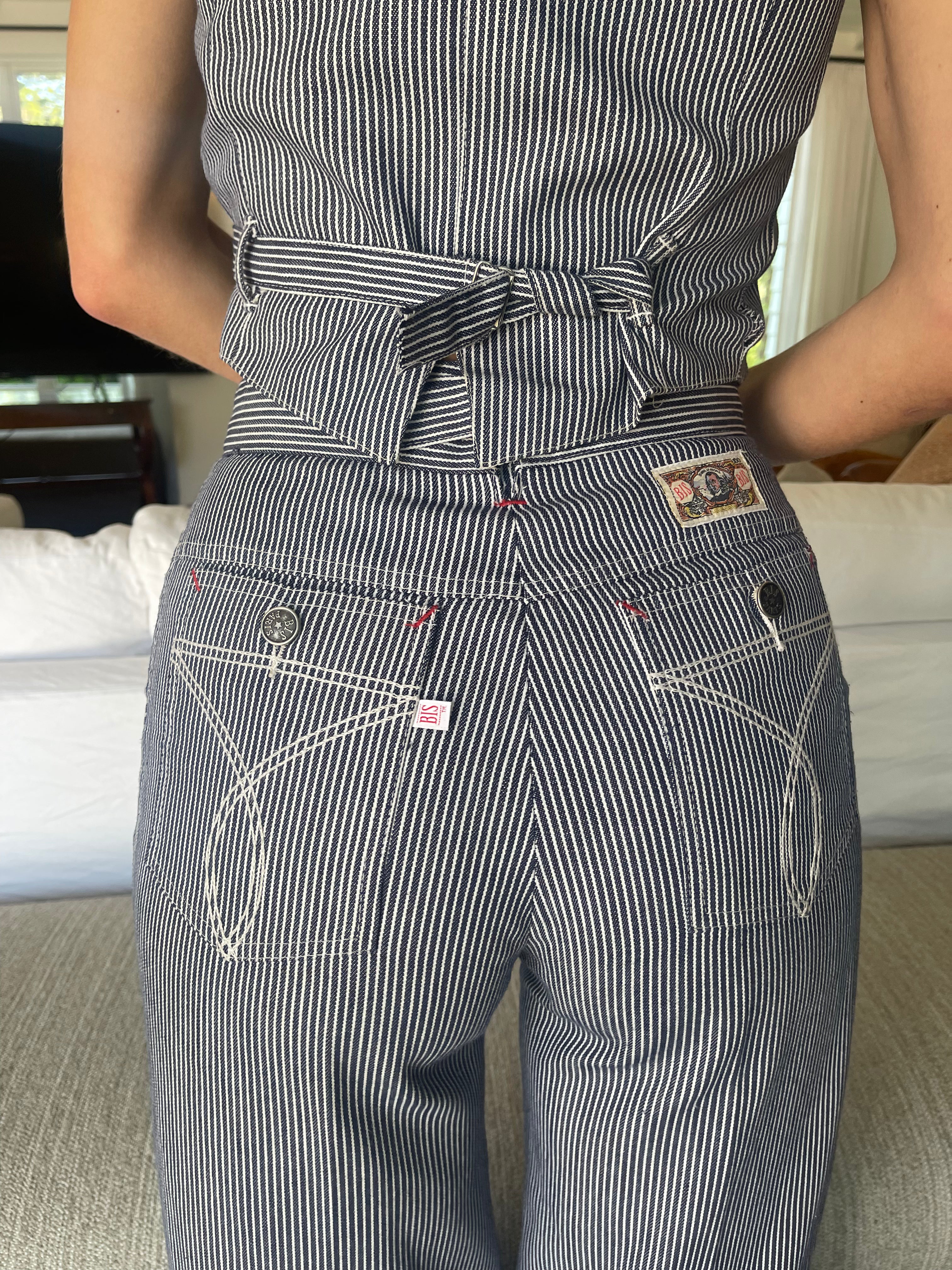 90s Vintage Jay Lerbret pour BIS Railroad Stripe 3-Piece Pant Suit | Hickory Stripe Vest & Trouser Set