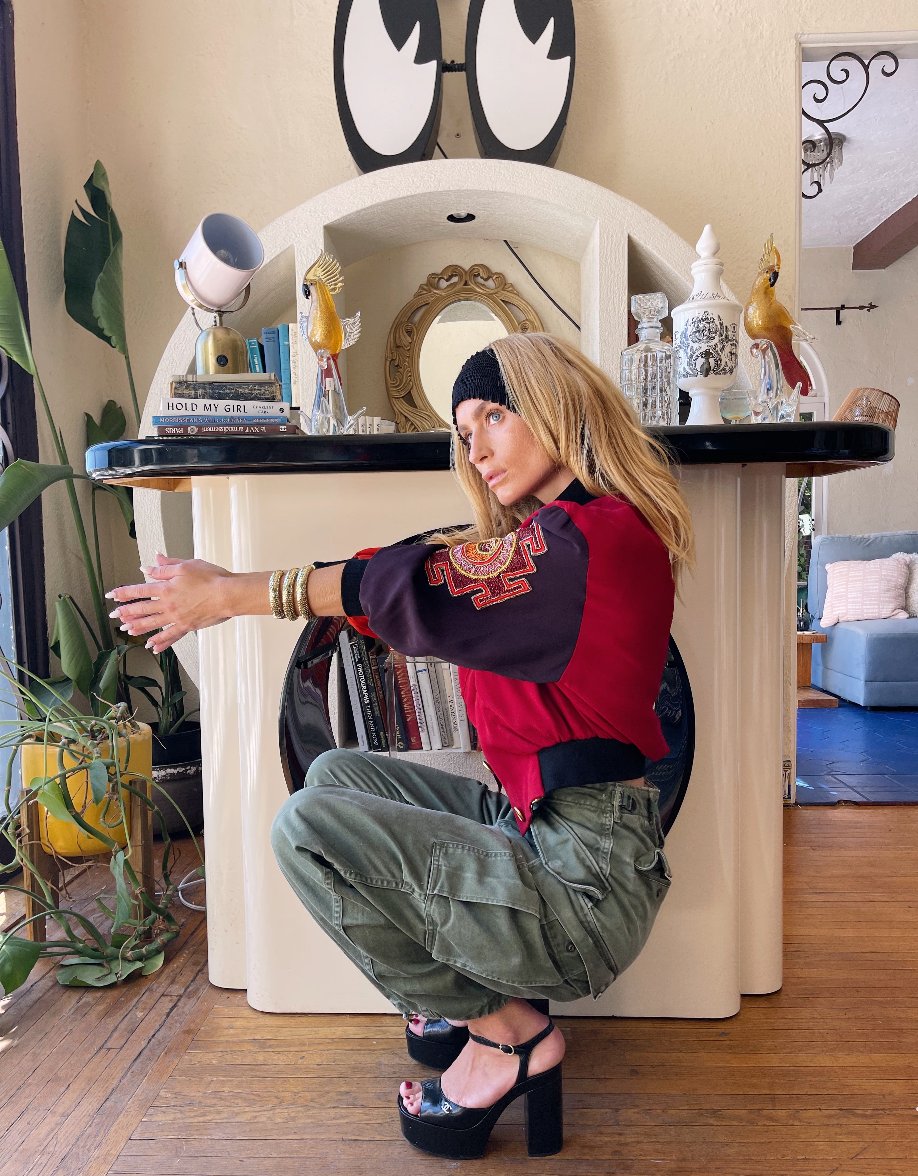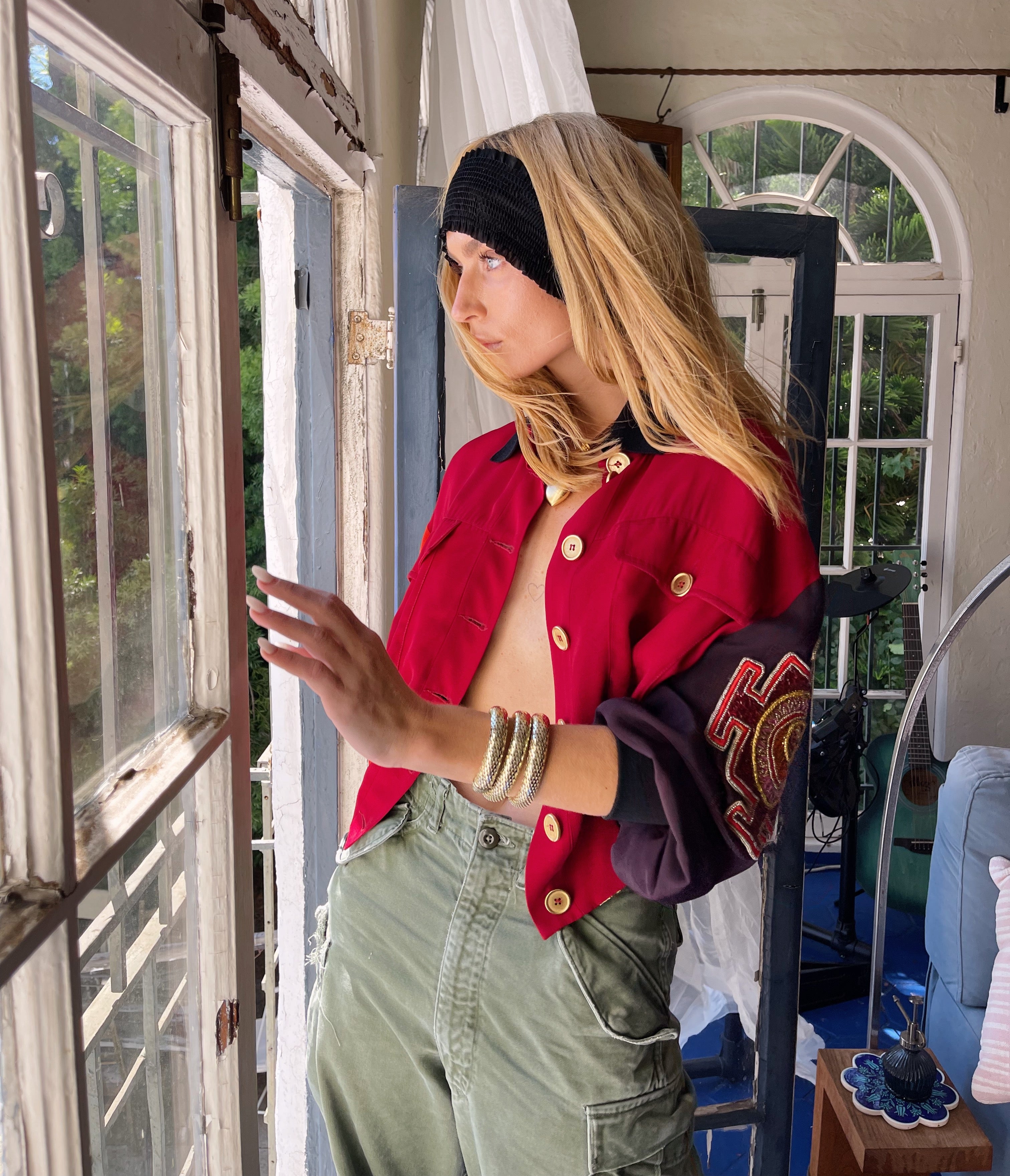 90s Vintage Ozbek Red Embellished Beaded Bomber Jacket