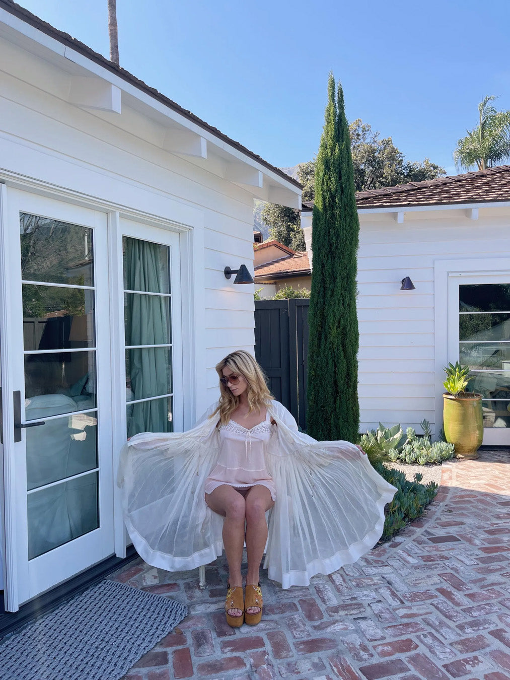 Rare 90s Pero Silk Chiffon Sheer Duster 00ss Ivory Bridal Lingerie Midi Cape With Lace Trim