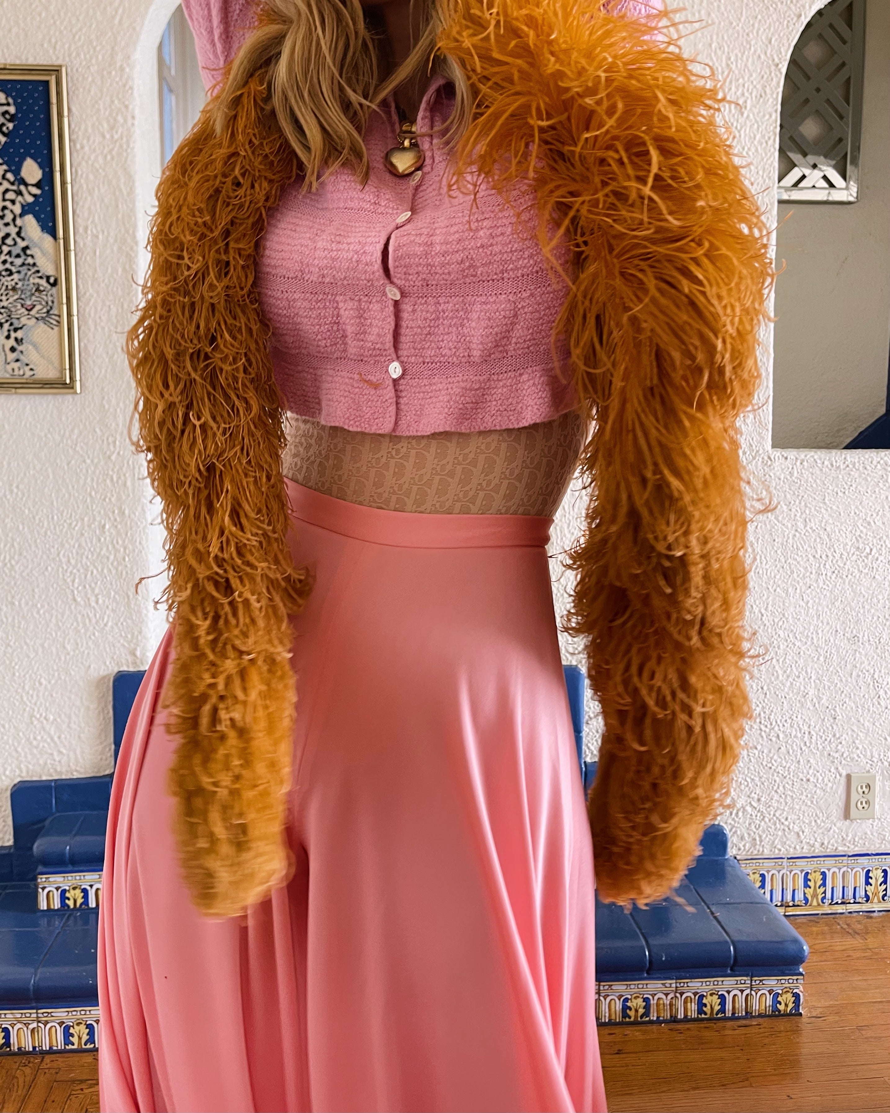 70s Vintage RARE Sonia Rykiel for Bergdorf Goodman Italian Pink Mohair Angora Long Cardigan