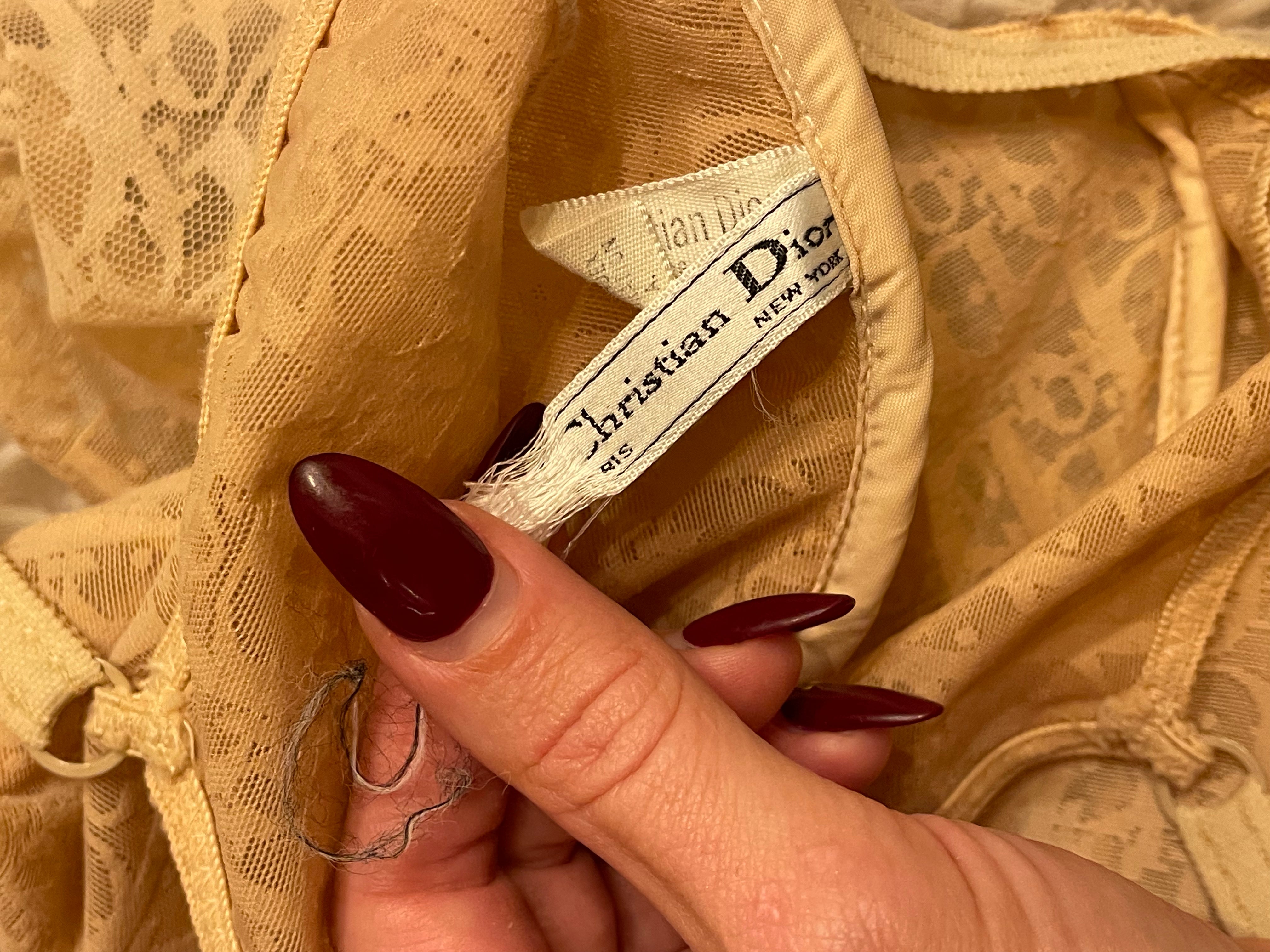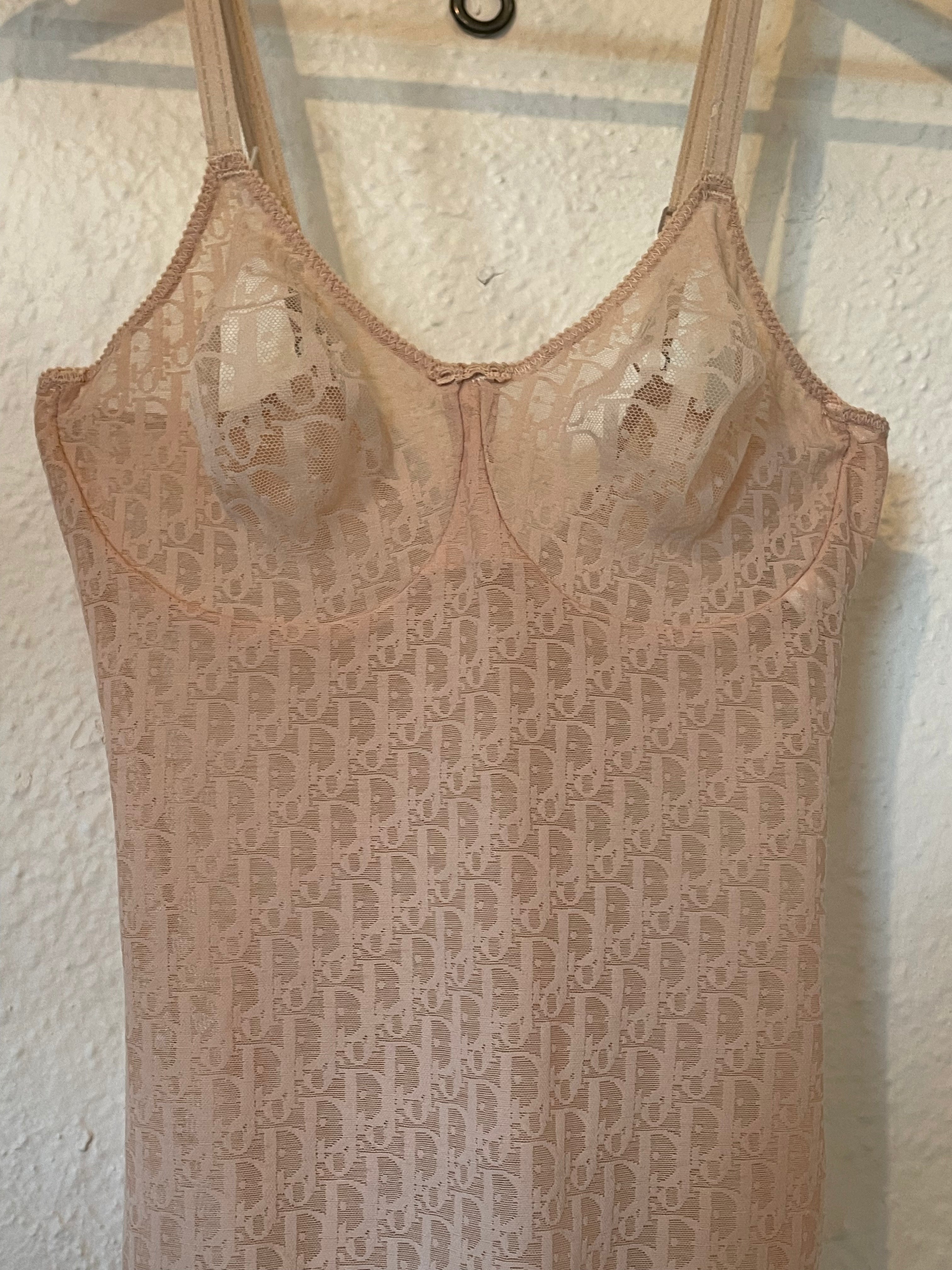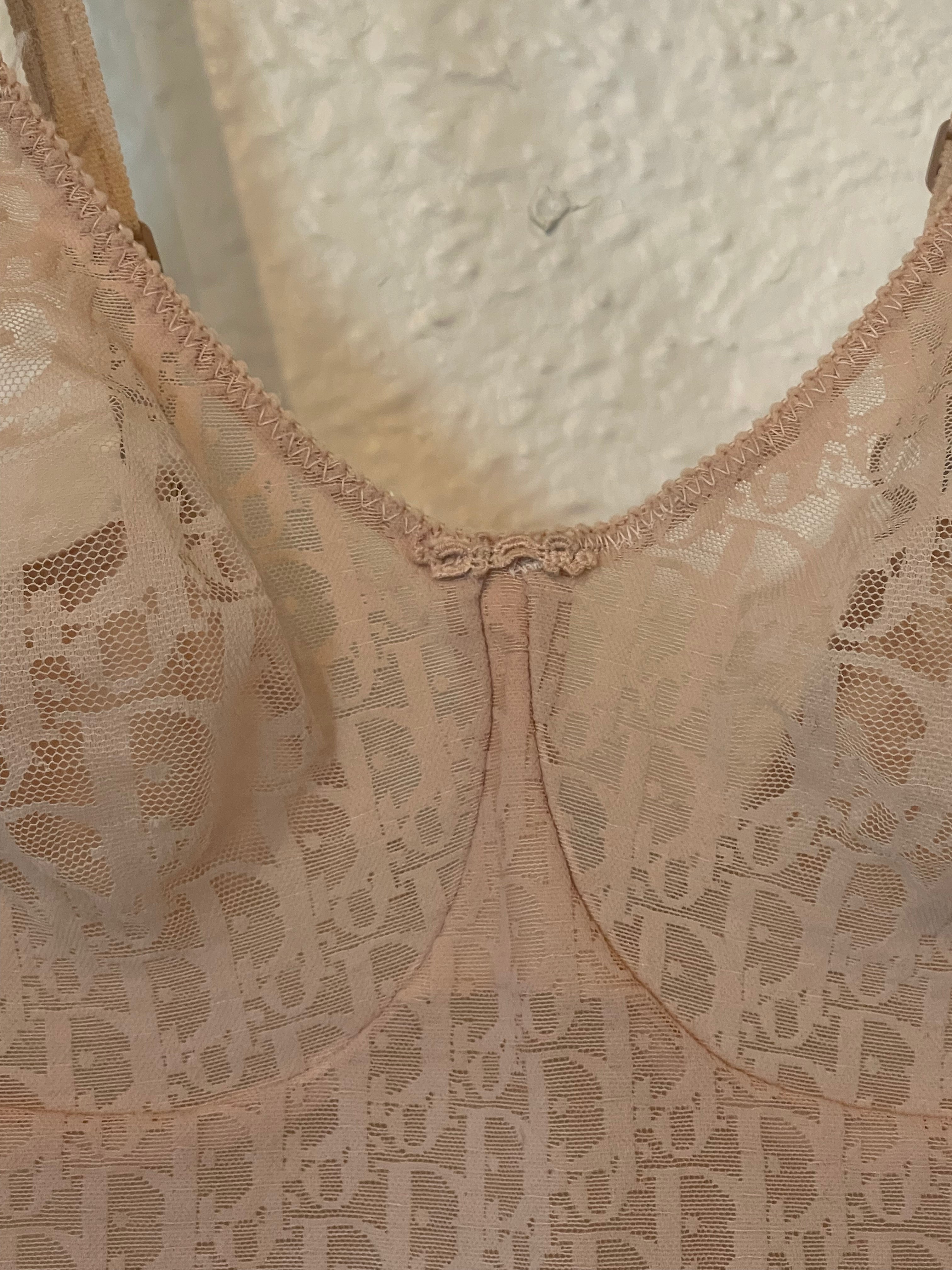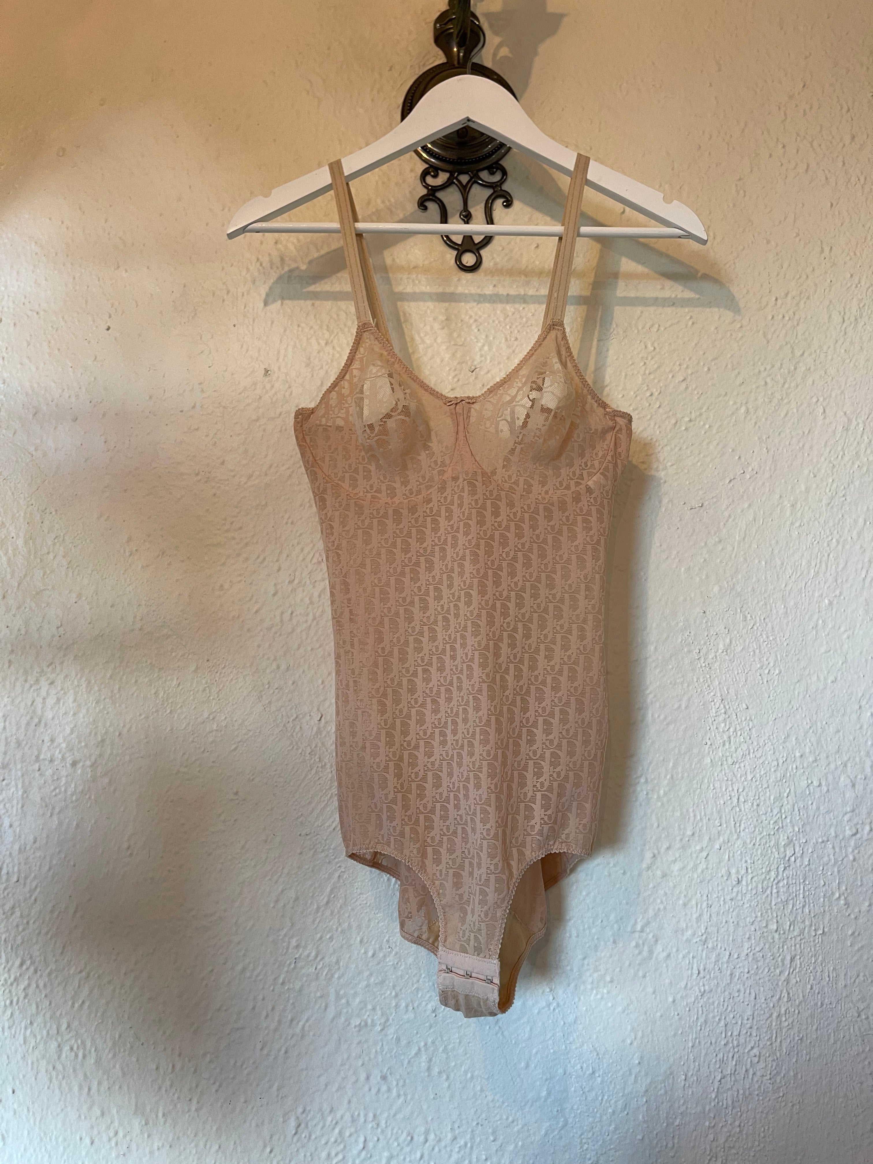 90s Vintage Rare Christian Dior Logo Mesh Bodysuit Nude Monogram One-Piece