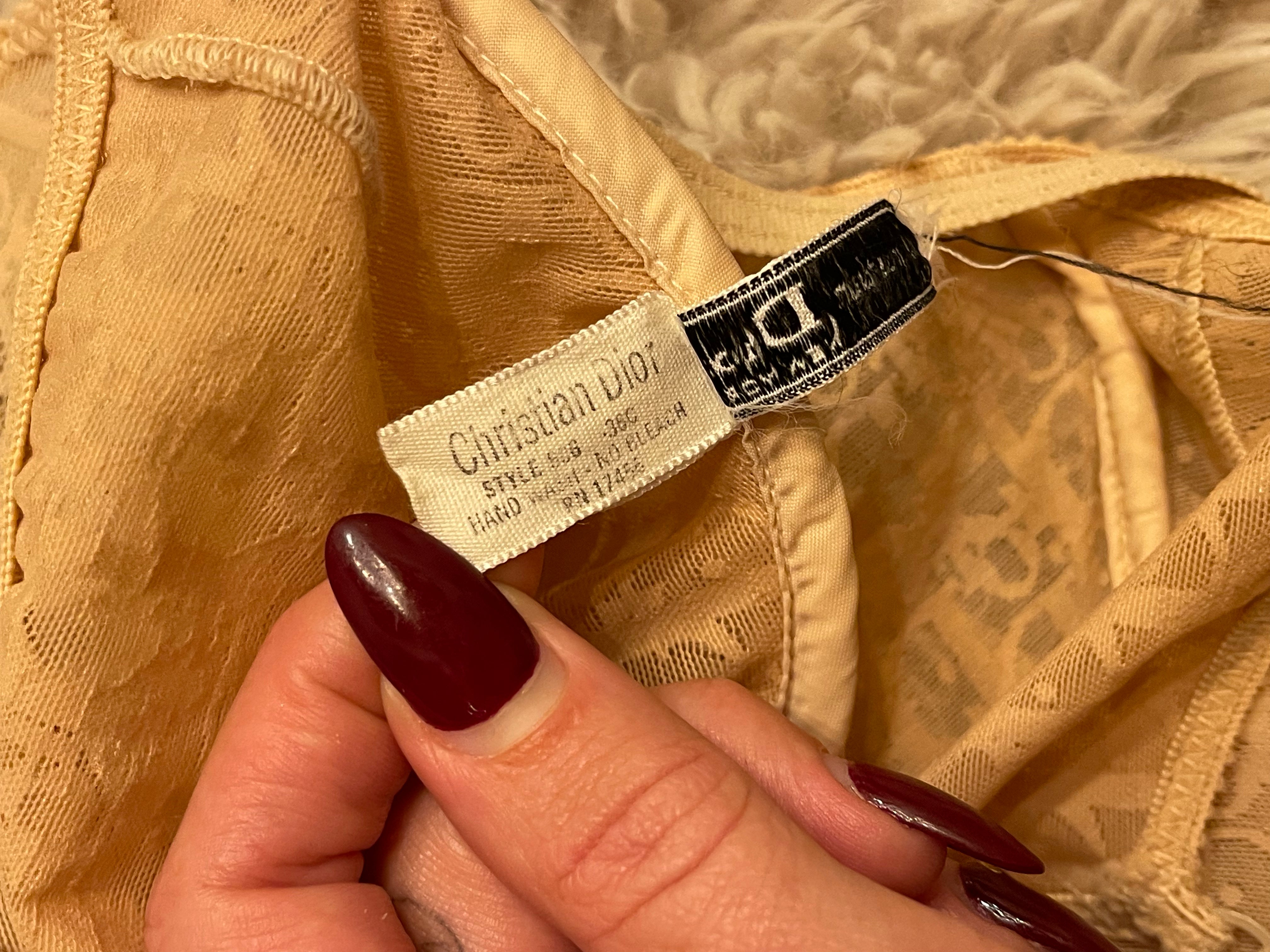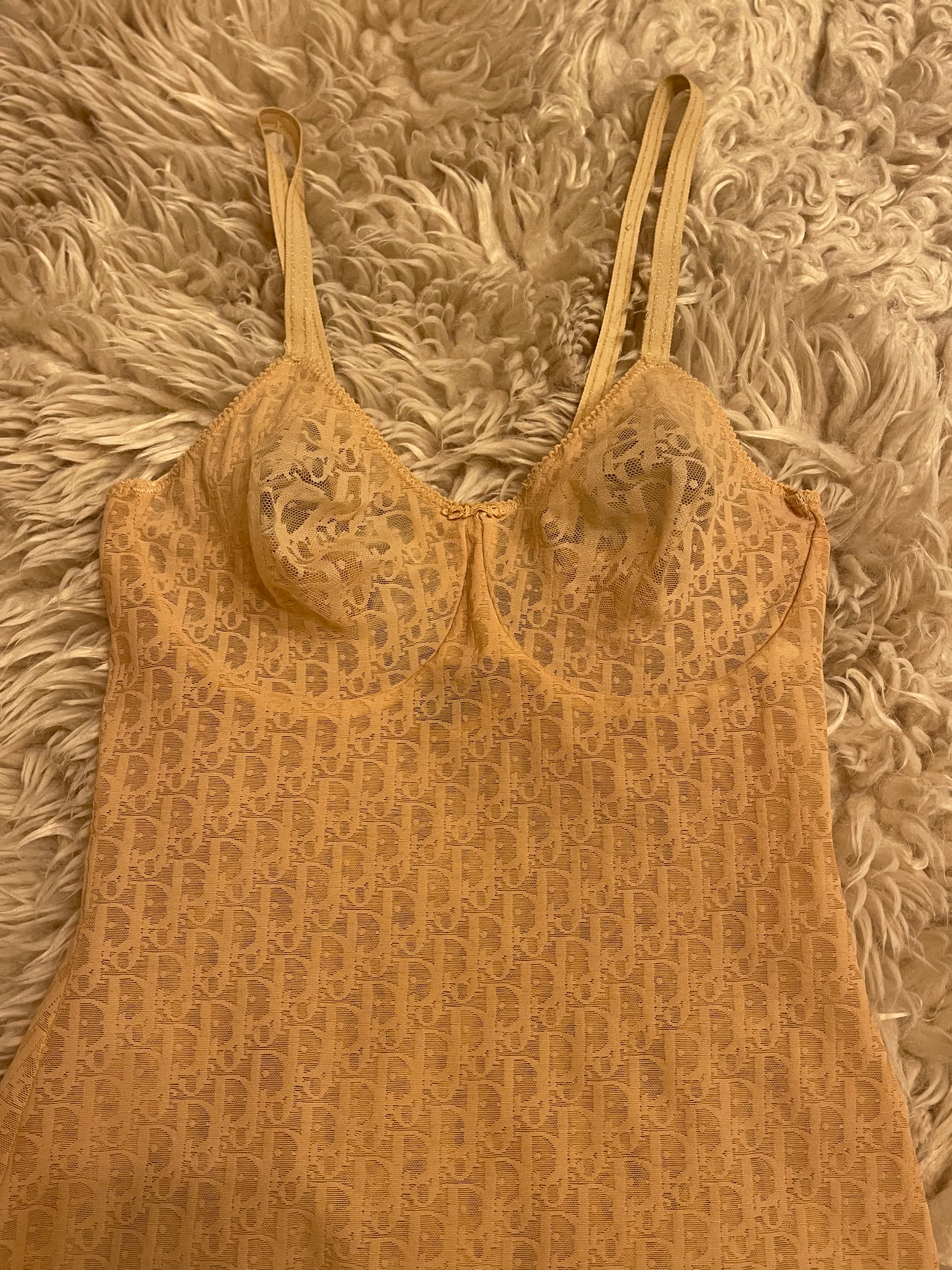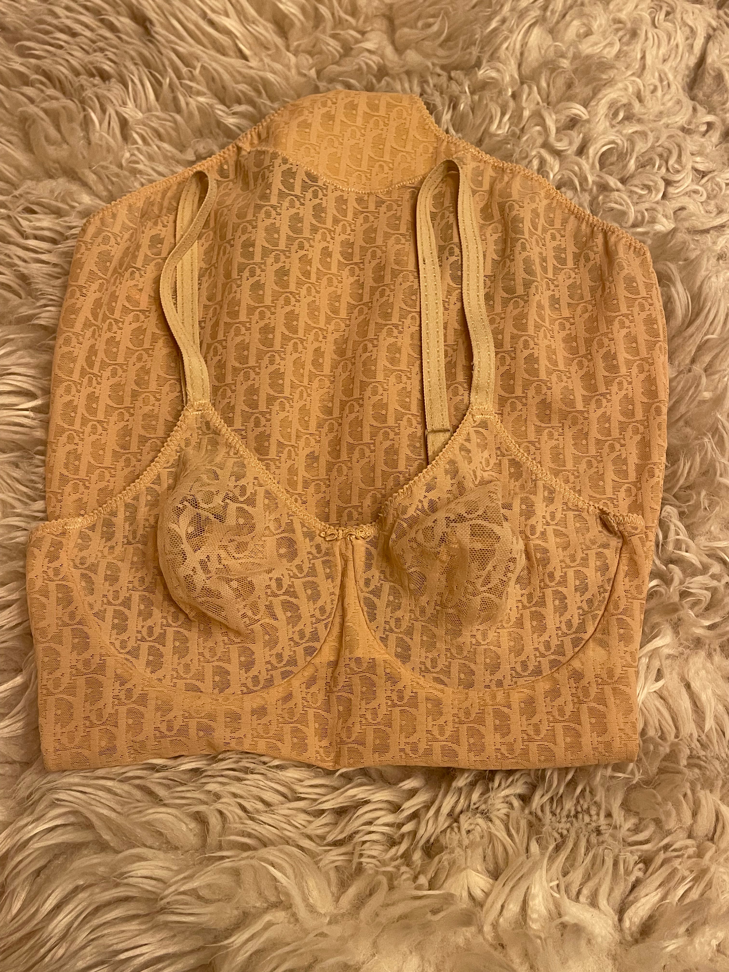 90s Christian Dior mesh logo bodysuit — the kind of piece fashion dreams (and runways) were built on. Sheer nude stretch mesh with the iconic Dior monogram throughout, finished in a body-hugging silhouette that channels vintage luxury.