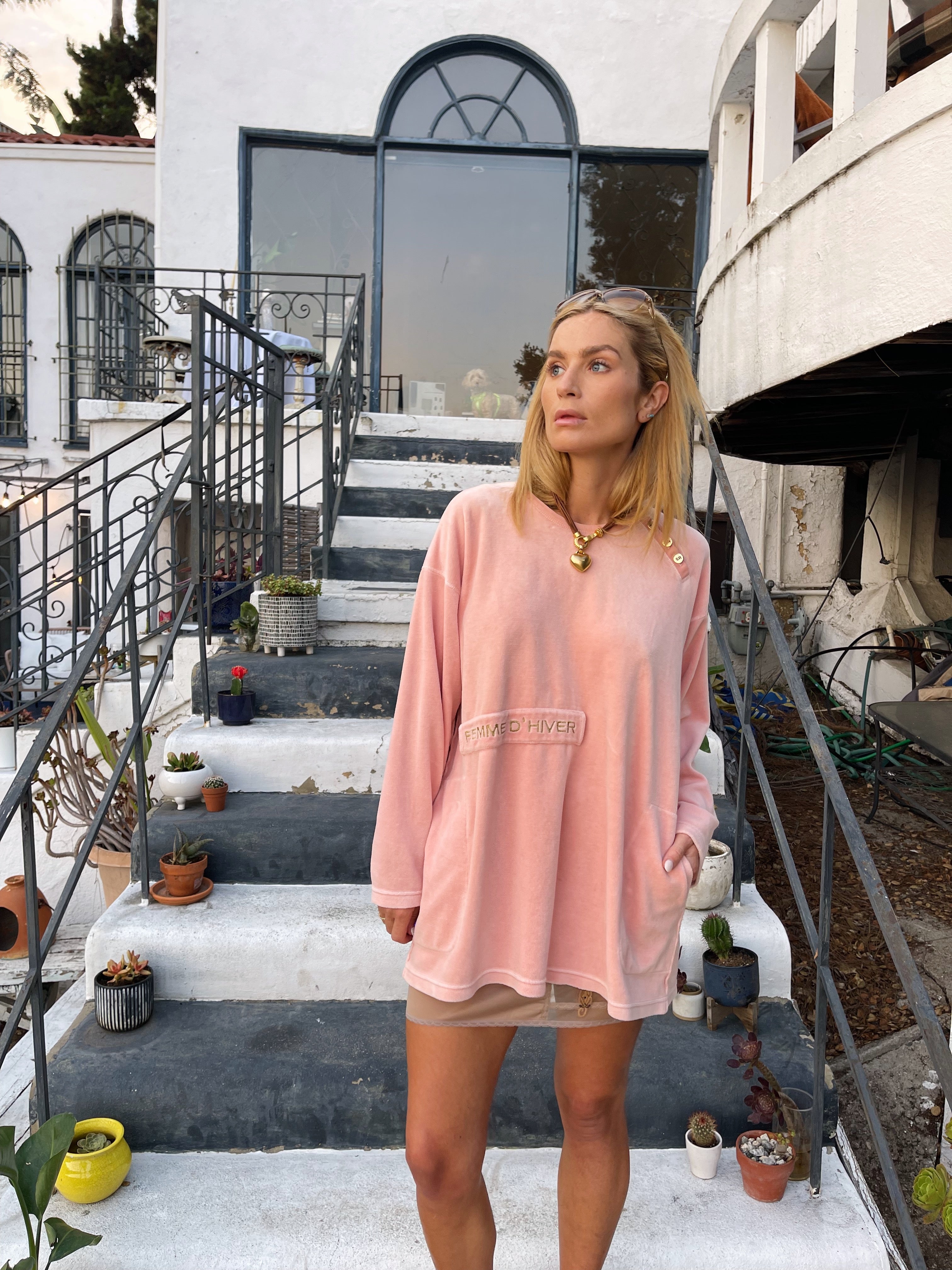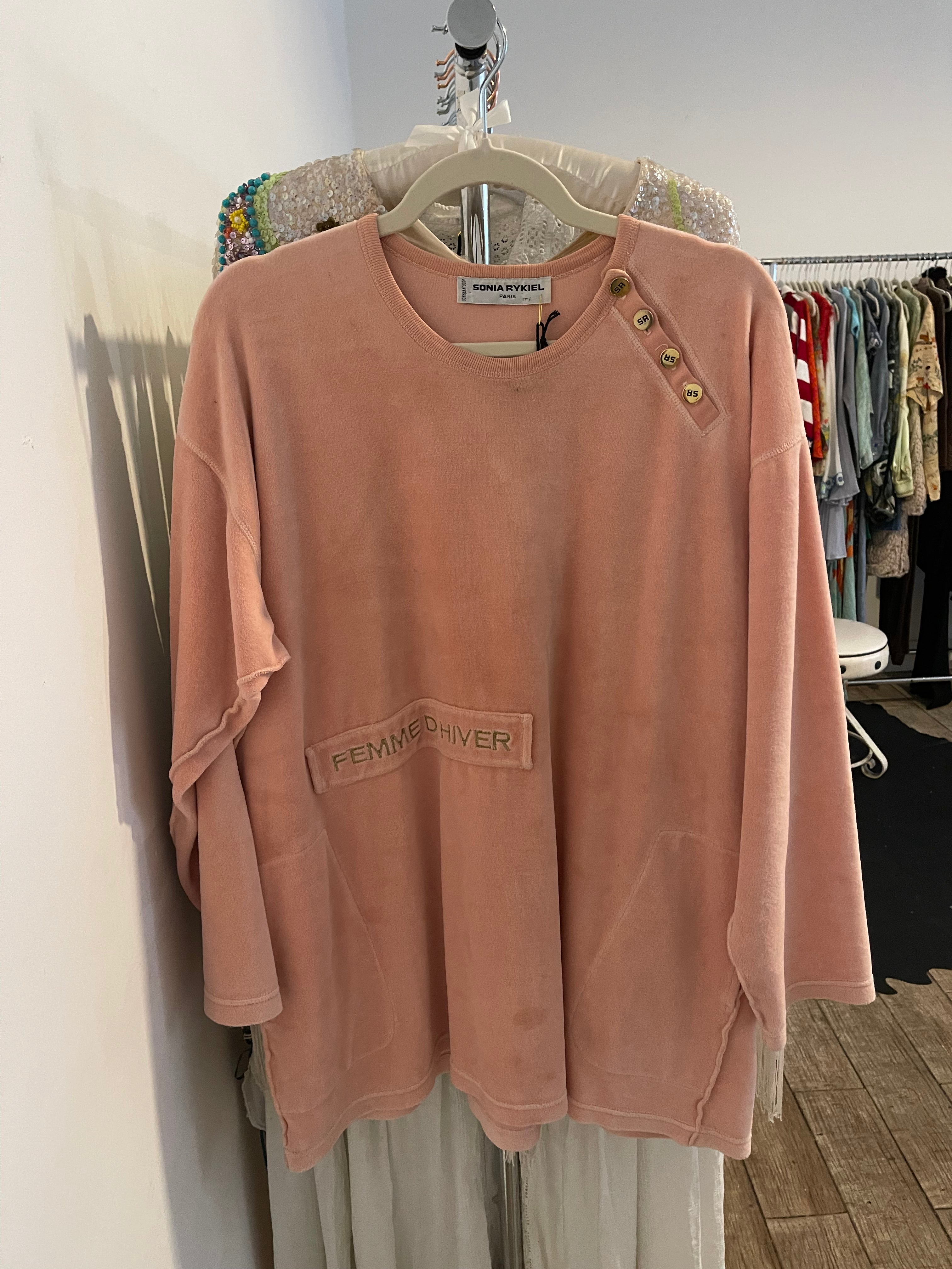 90s Vintage Sonia Rykiel Winter Women Pink Velvet Pullover Sweater