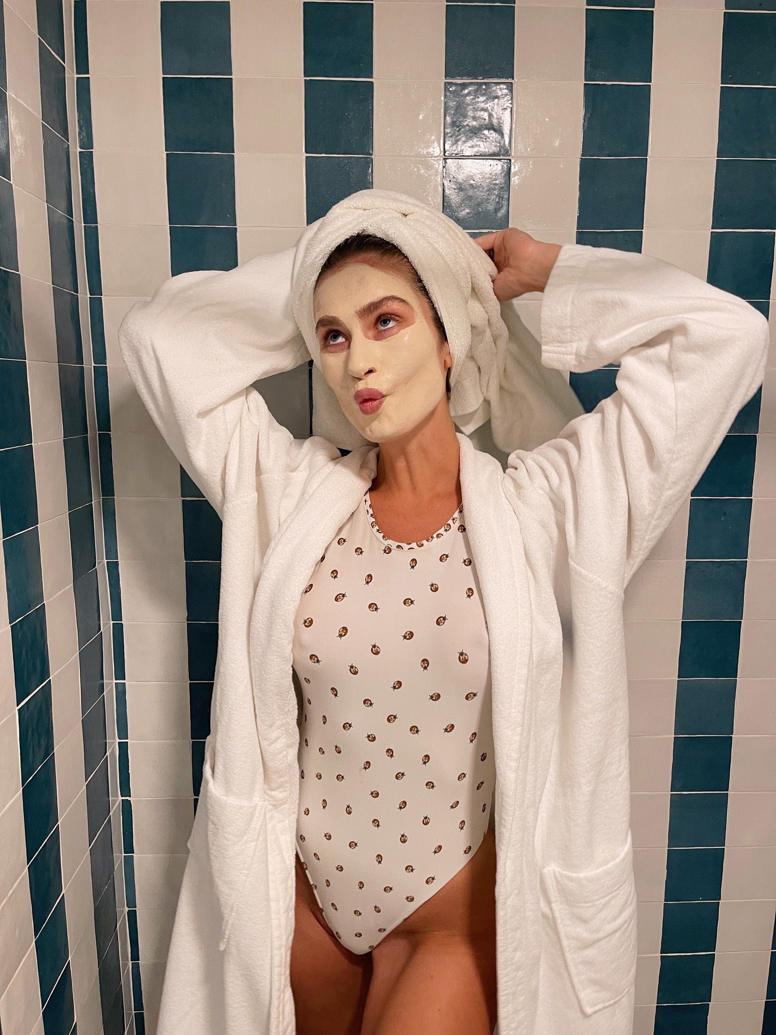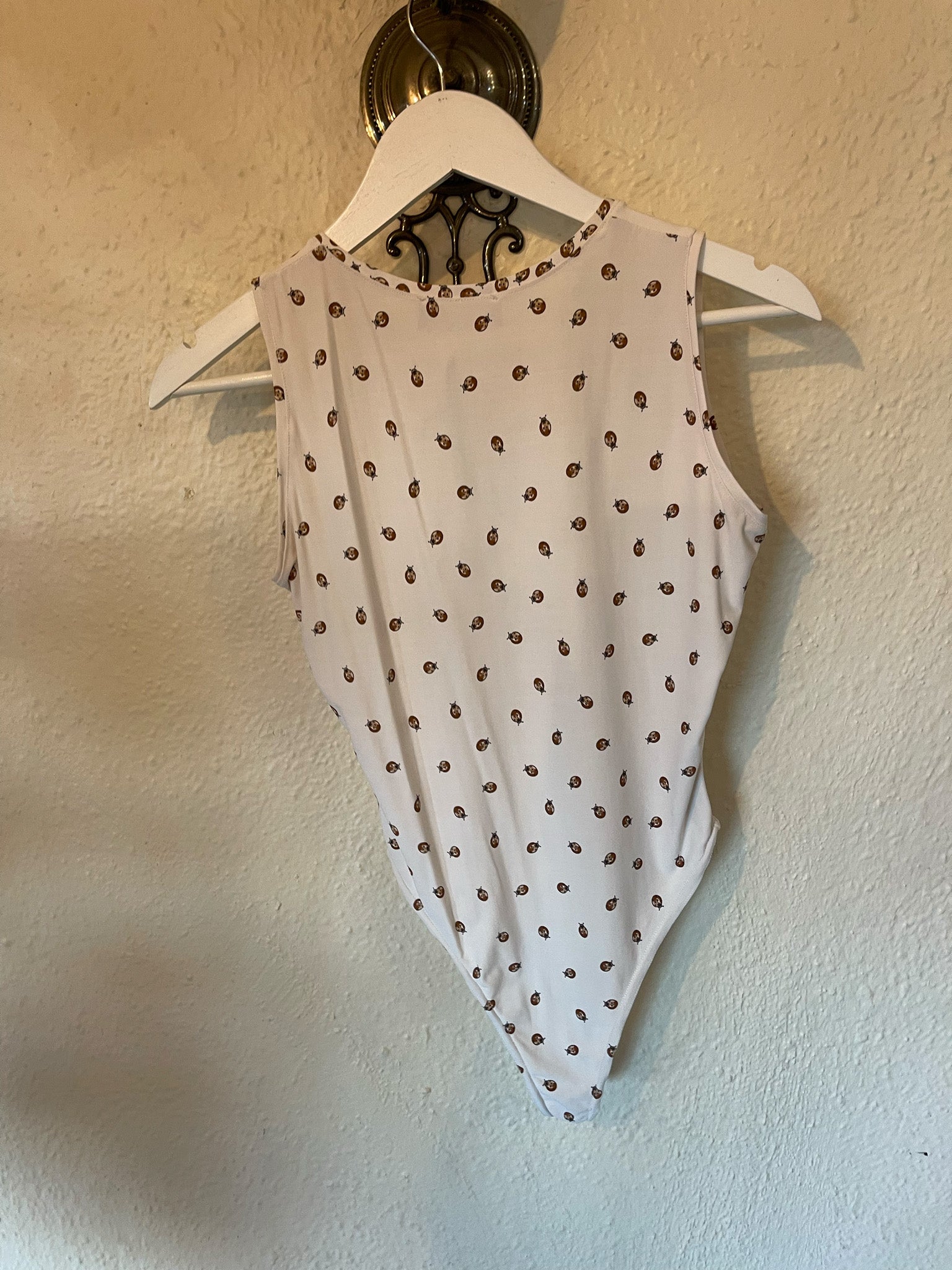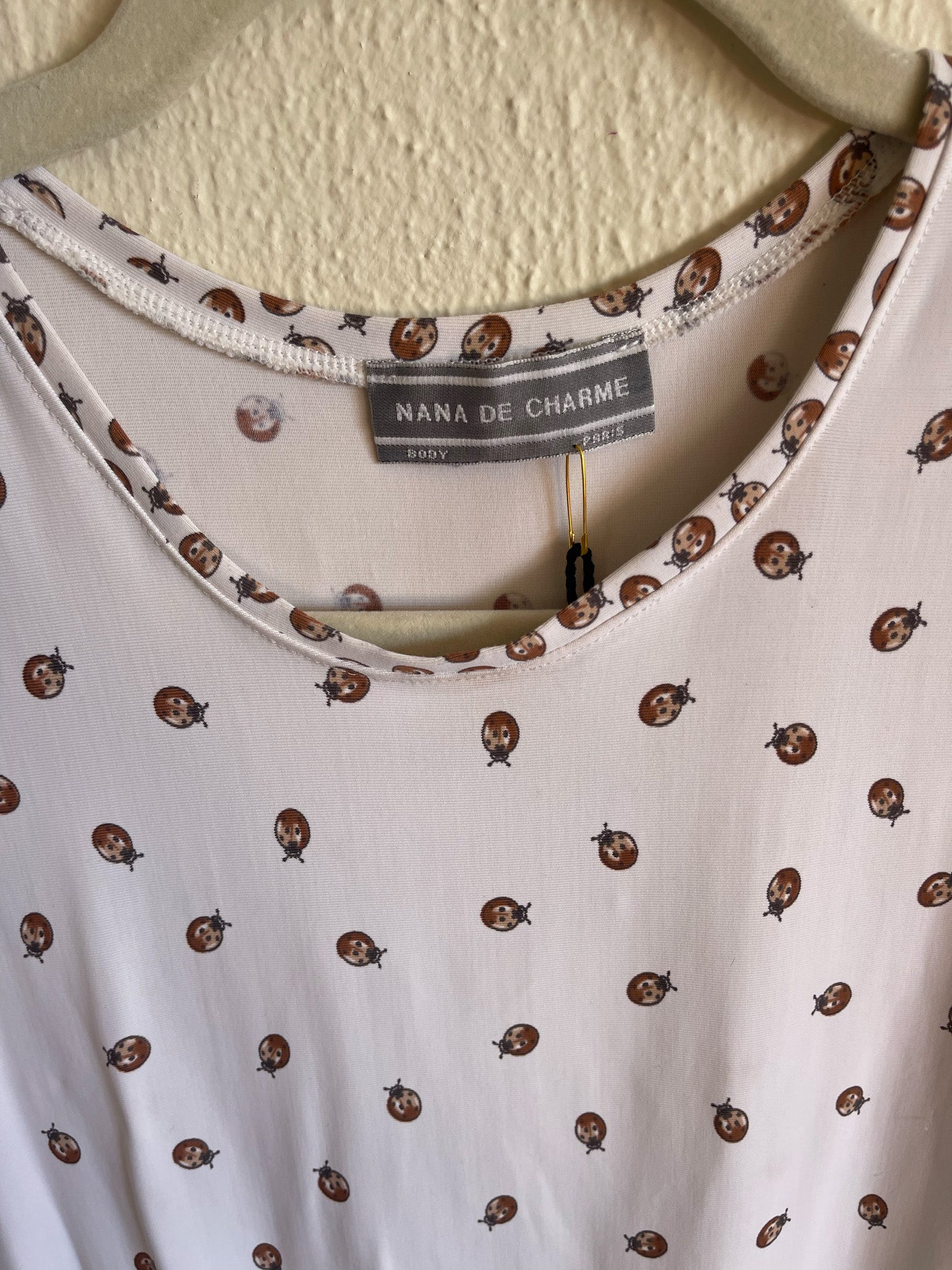 Playfully 90s Nana De Charme bodysuit — made in France and covered in a darling all-over ladybug print that balances French coquettishness with vintage lingerie charm.