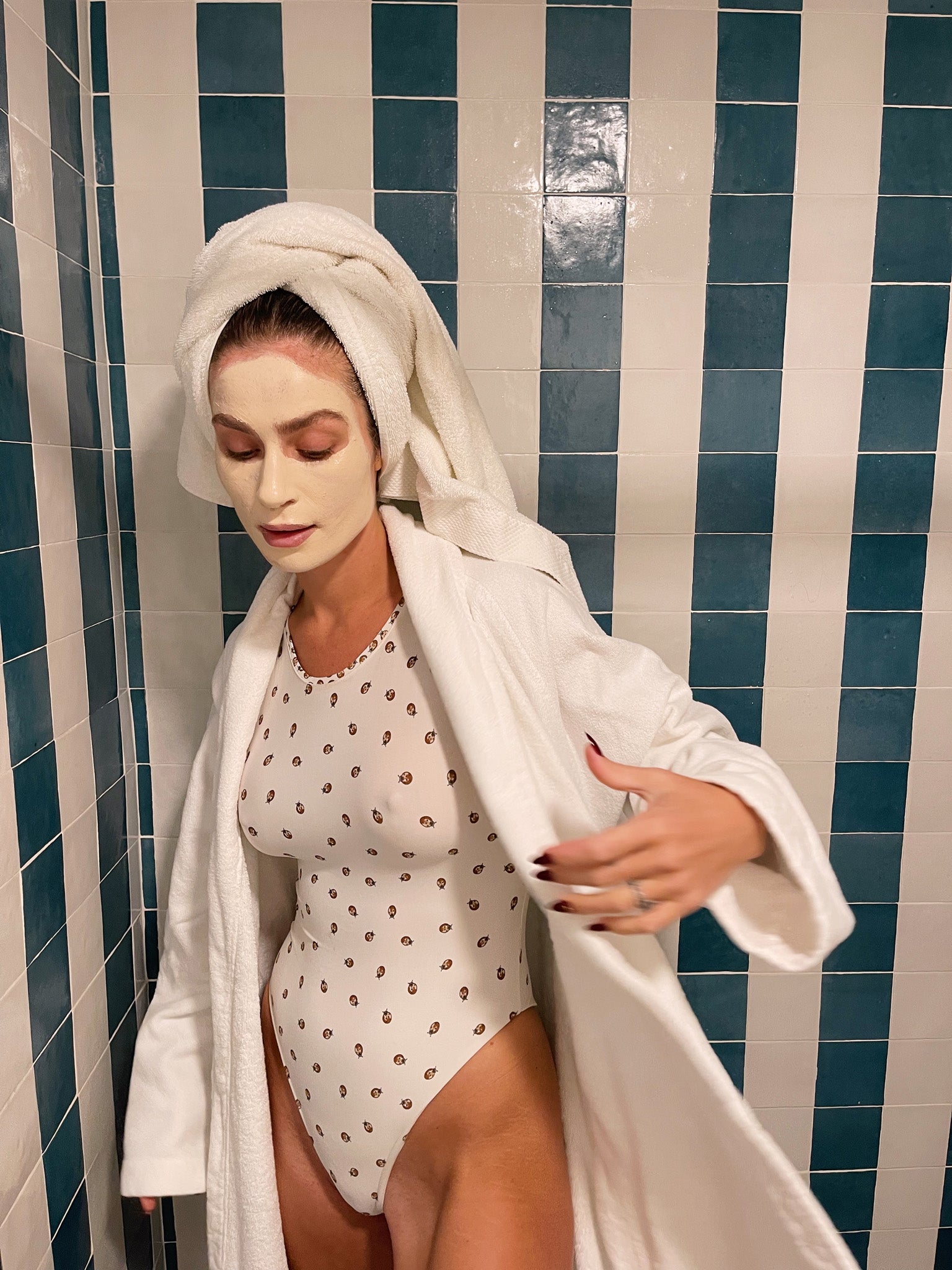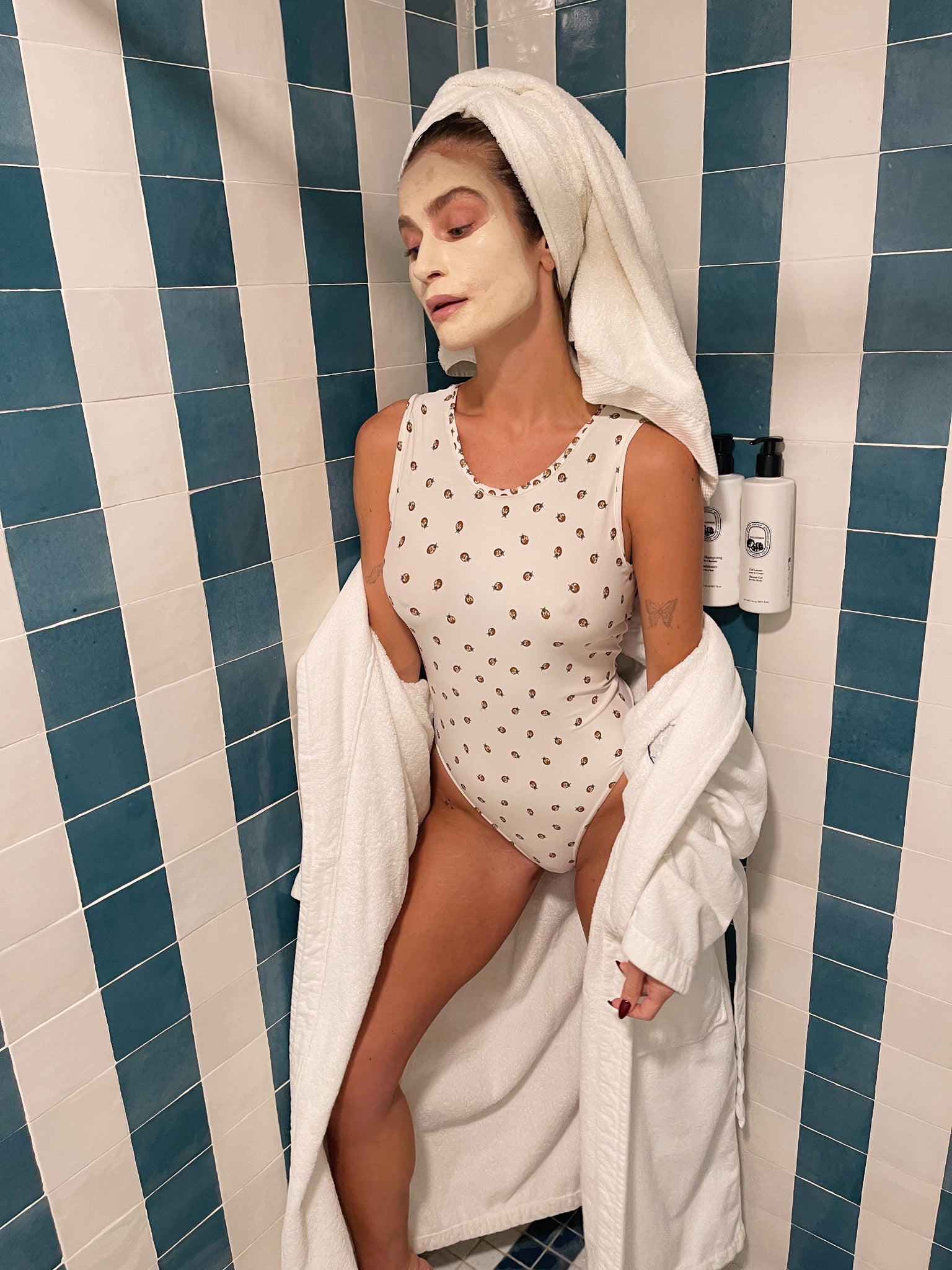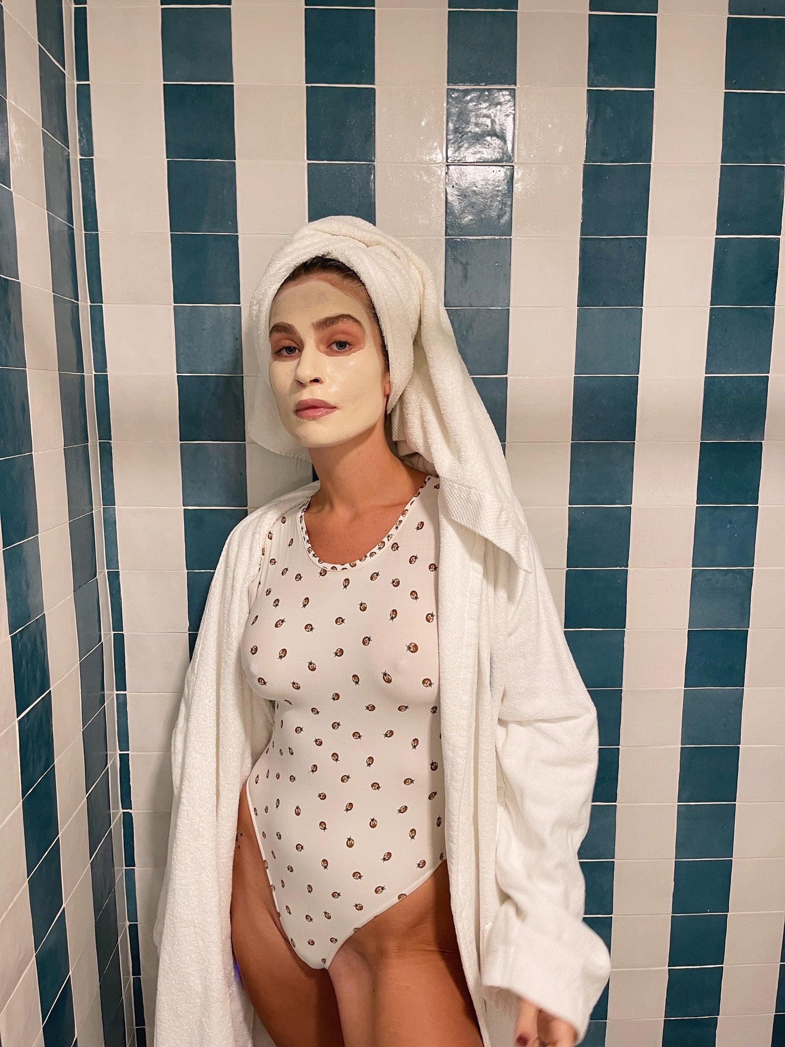 Playfully 90s Nana De Charme bodysuit — made in France and covered in a darling all-over ladybug print that balances French coquettishness with vintage lingerie charm.