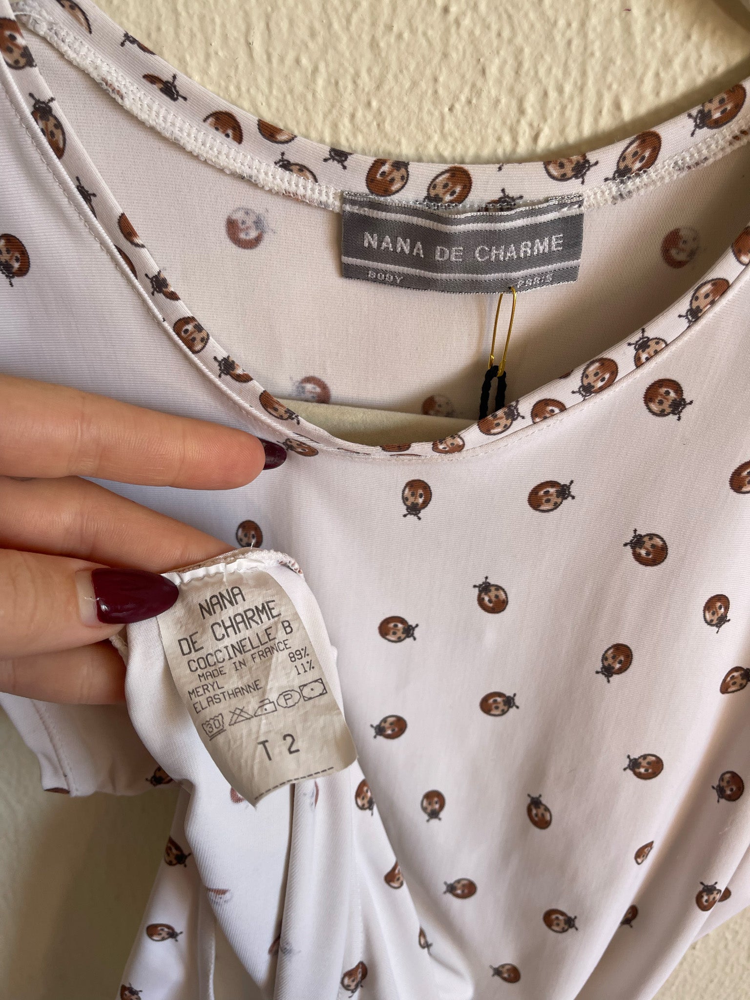 90s Vintage Nana De Charme Ladybug Print Bodysuit | French Designer Lingerie